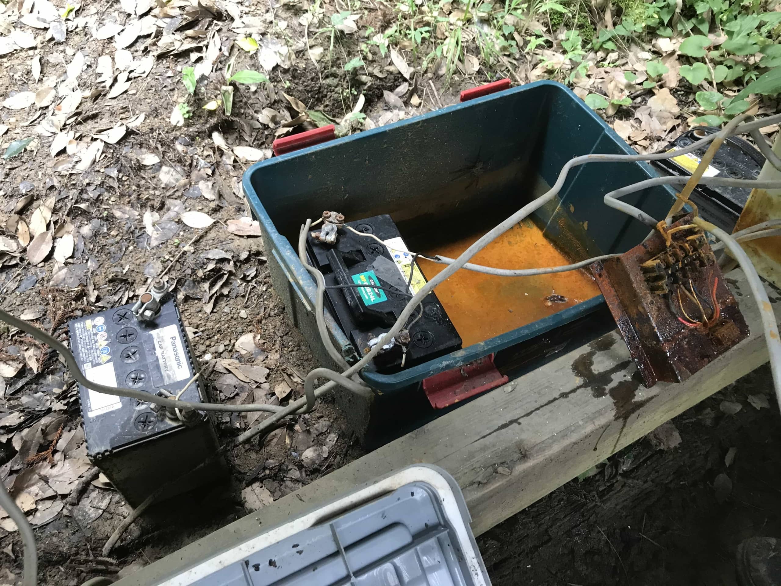電気は少しの太陽光パネルと蓄電するための車のバッテリー(これにはおどろきました)