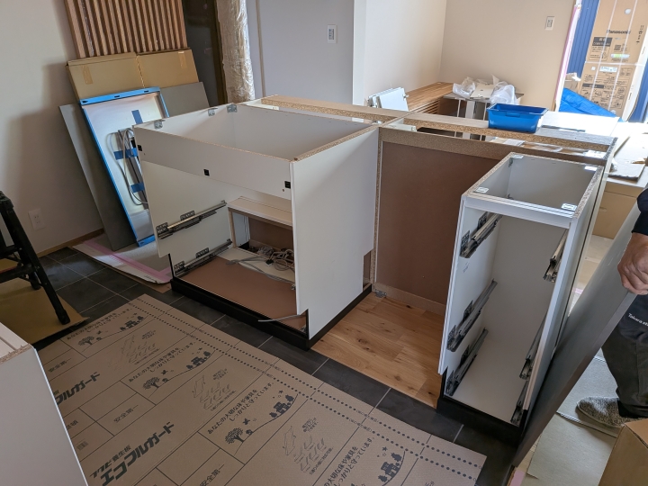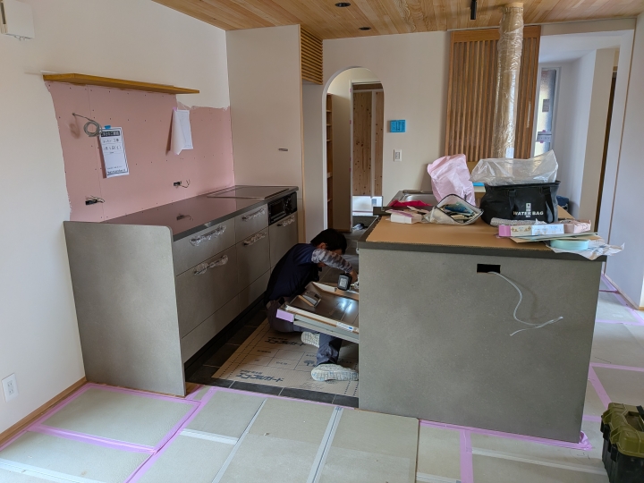 10時過ぎに見に行くとすでにキッチンの枠が組まれていました。
