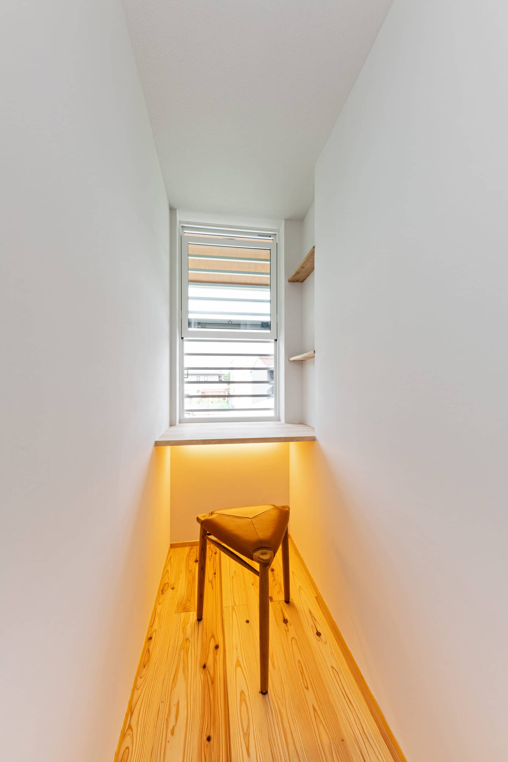 家族の気配が常に感じられるのがコンパクトハウスのいい所。もちろんそこには工夫をしてひとりになれる居場所をたくさん作ってあげる事も大事です。