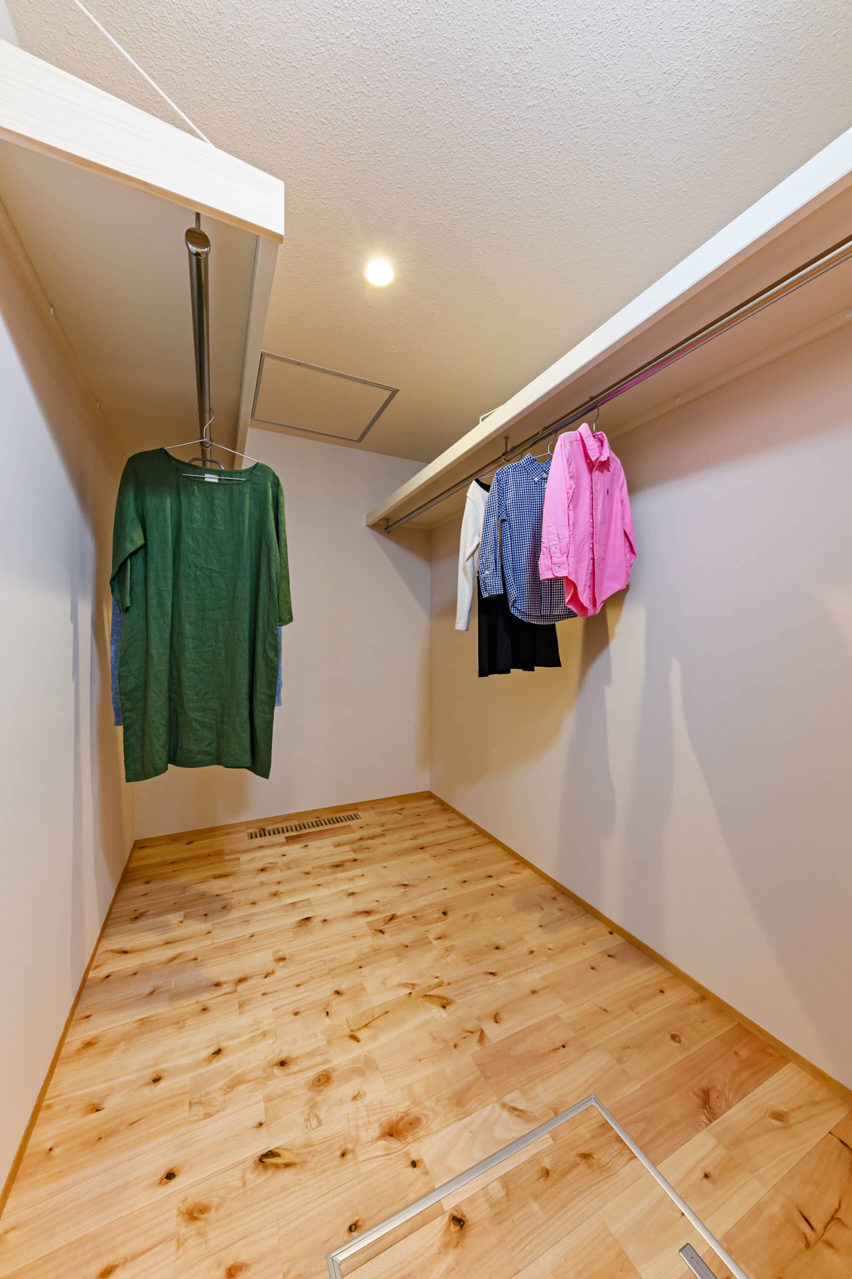 1階に設置したウォークインクローゼットです。片付けや身支度に便利に使って頂けそうです。