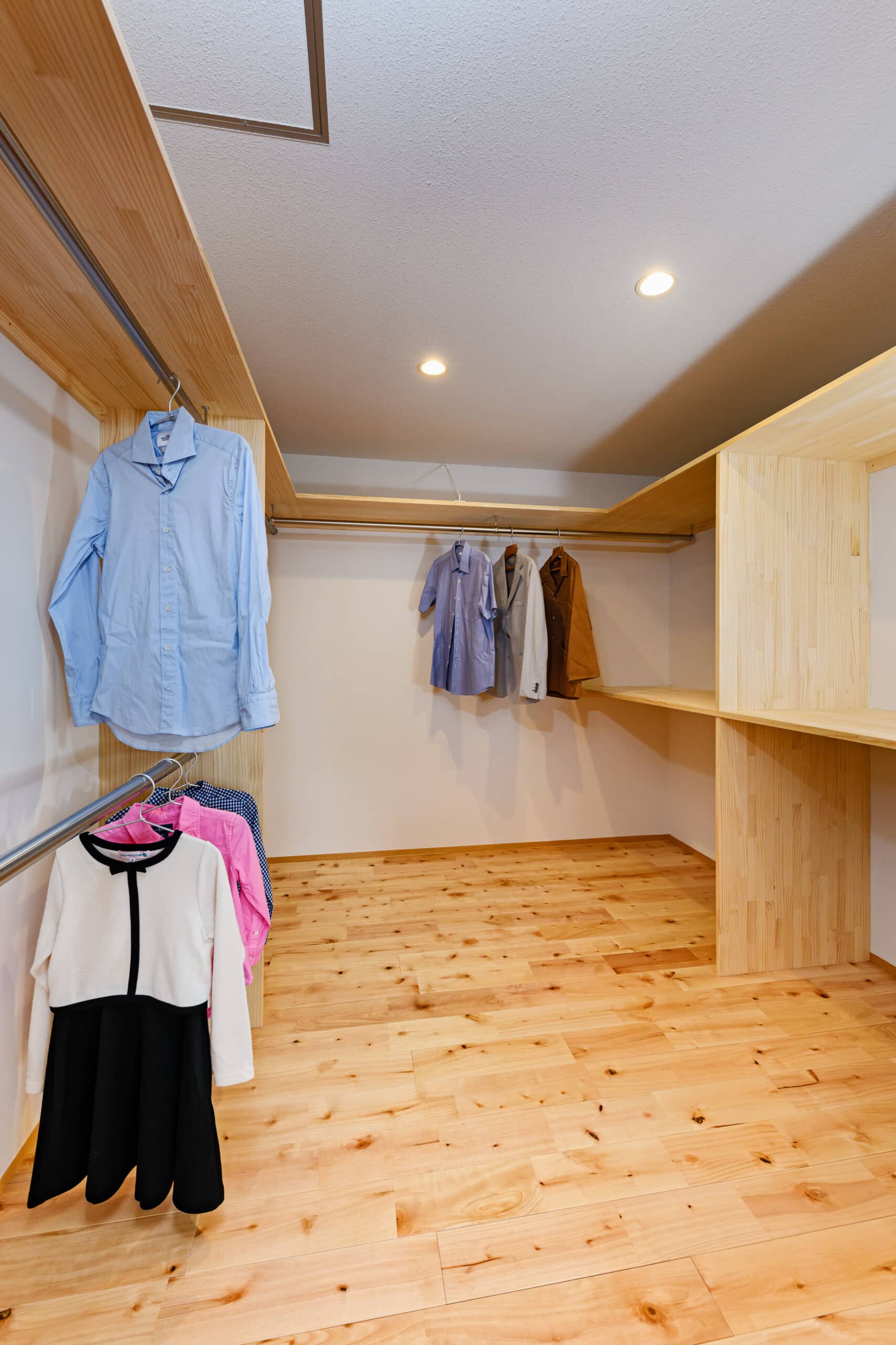 こちらは脱衣室です。部屋干しも出来る空間となっています。収納もたっぷりです。