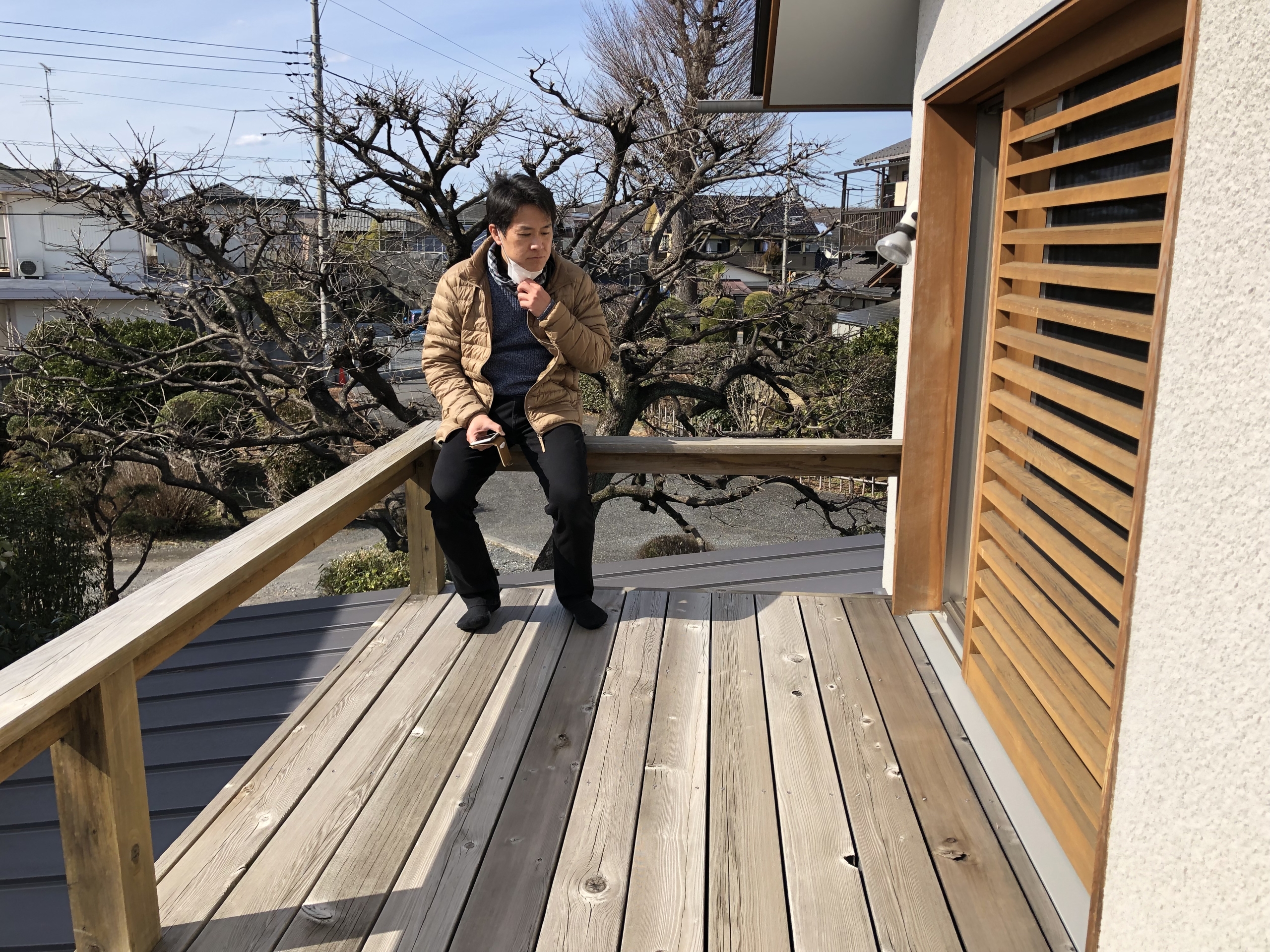 木製のスカイデッキ。エムズでも時々採用がありますが、亀山さんは手摺のディティールが気にいられたよう。