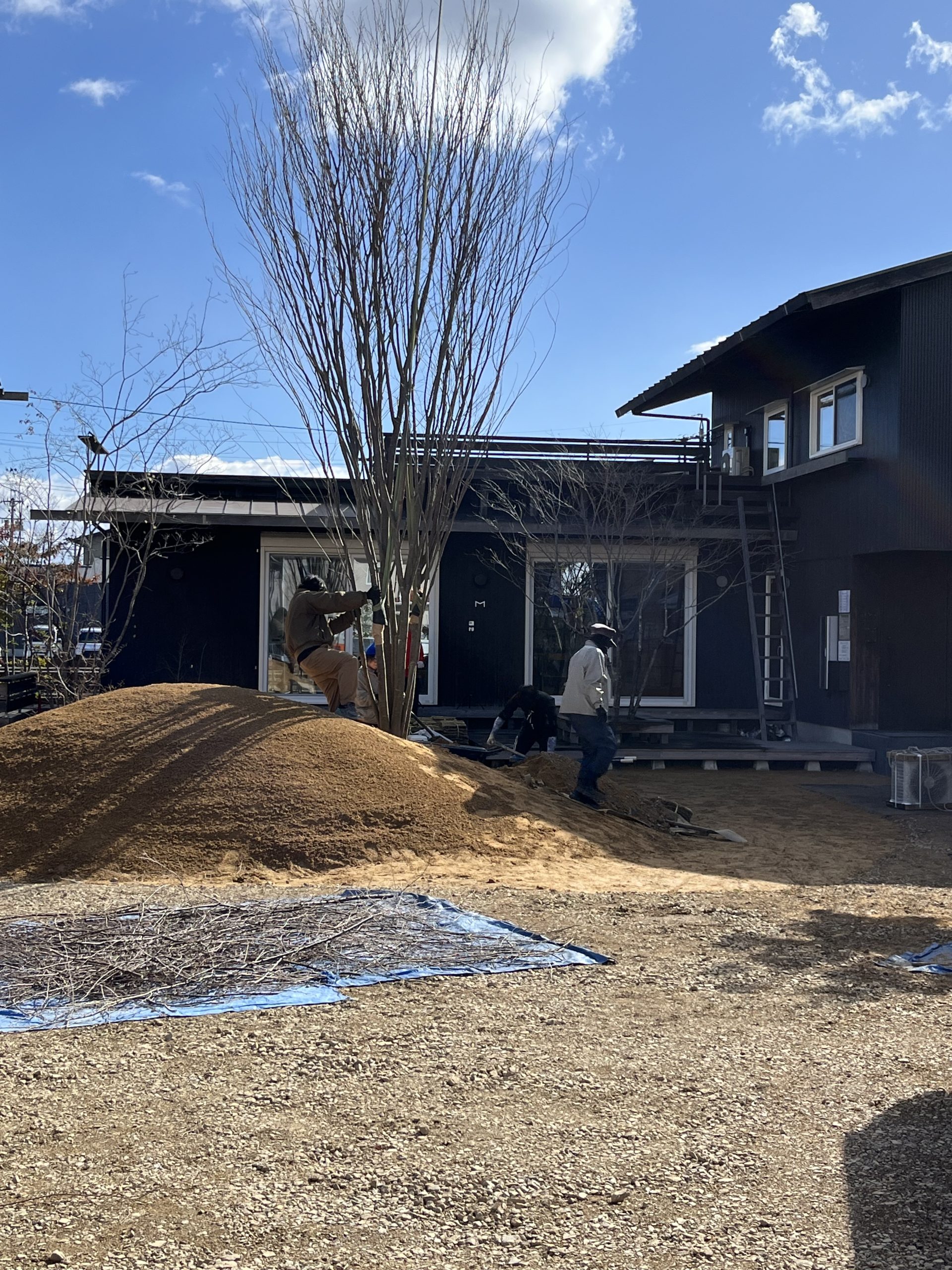 シンボルツリーも植わり、工事もいよいよ最終!完成間近です。