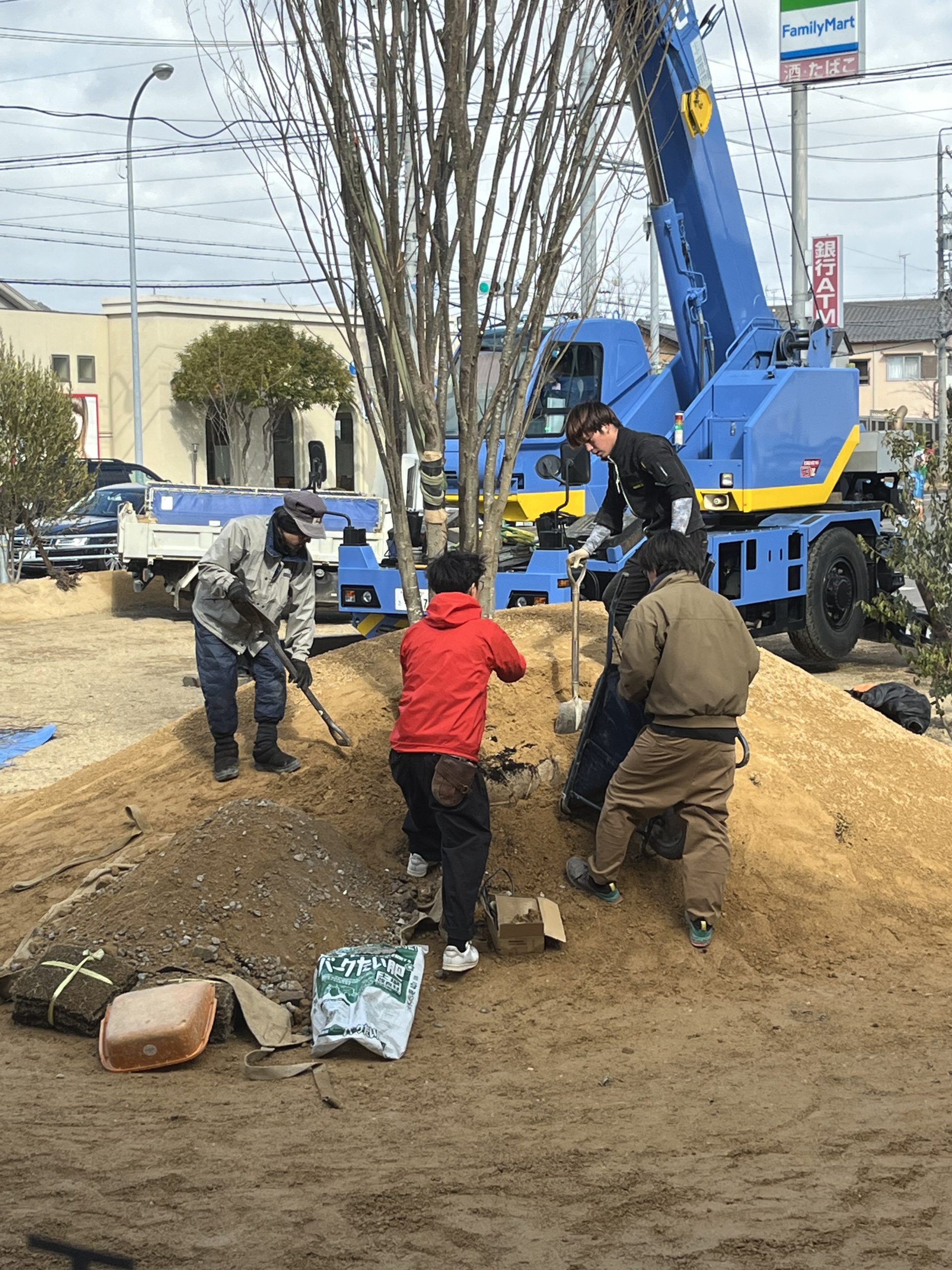エムズ新事務所外構工事もずいぶん進み、遂にシンボルツリー🌳が…