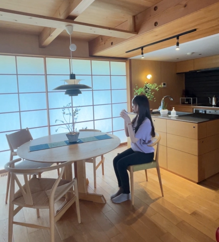 モデルのリビングでくつろぐ(演技をする)吉澤さん。