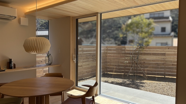 リビングの大きな掃き出し窓から見える山並みがとてもきれいで、