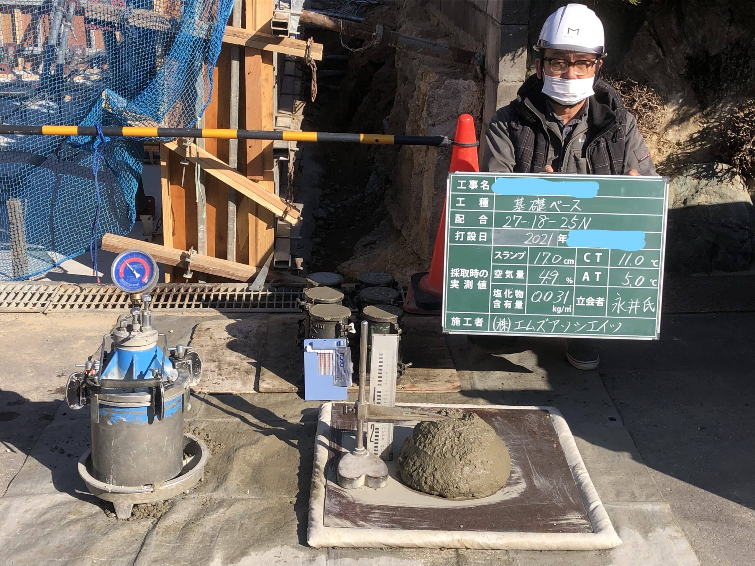 ご希望があれば、スランプ・空気量・塩化物含有量 硬化後の強度検査を行います。