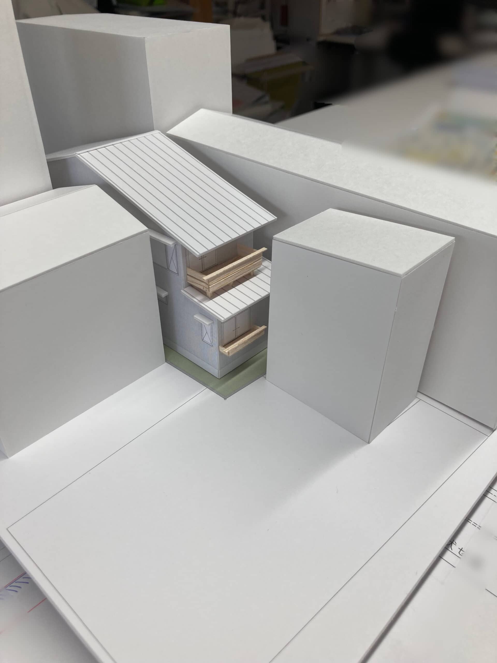 2枚目のお住まいはお隣との関係性が分かるようにお隣の建物も一緒に作ってみました。