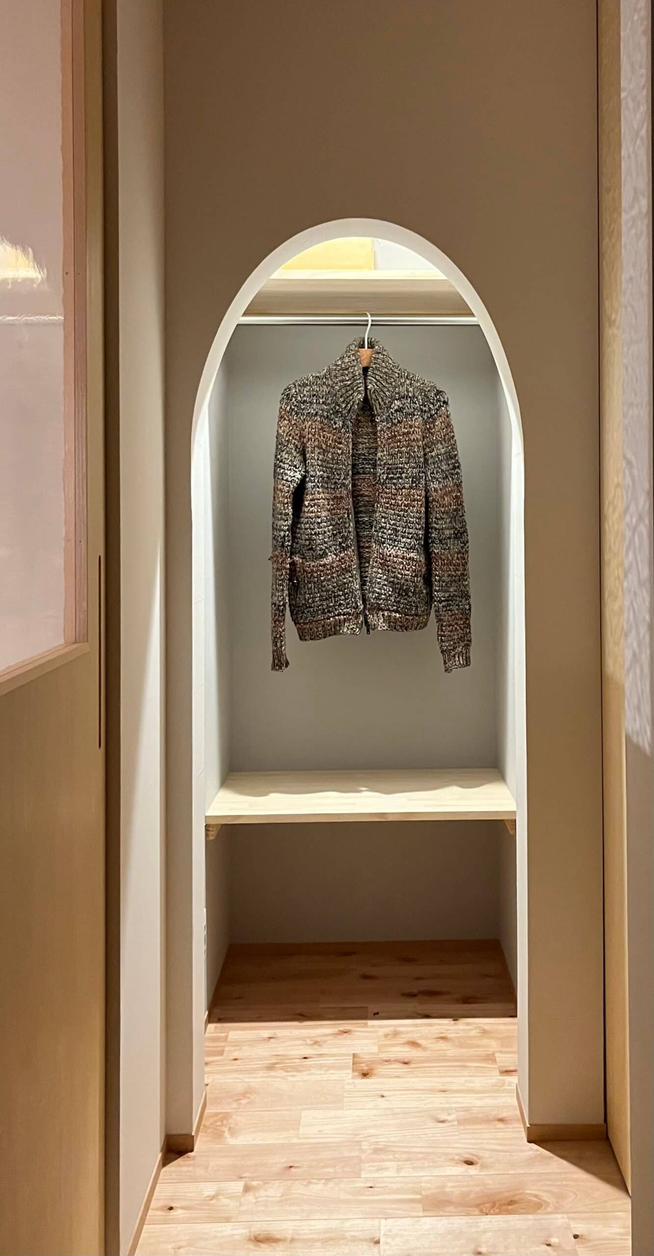 夜間もこうしてクローゼットに仕込んだ照明器具の効果で普段着もちょっとだけ、素敵に見えたりします。