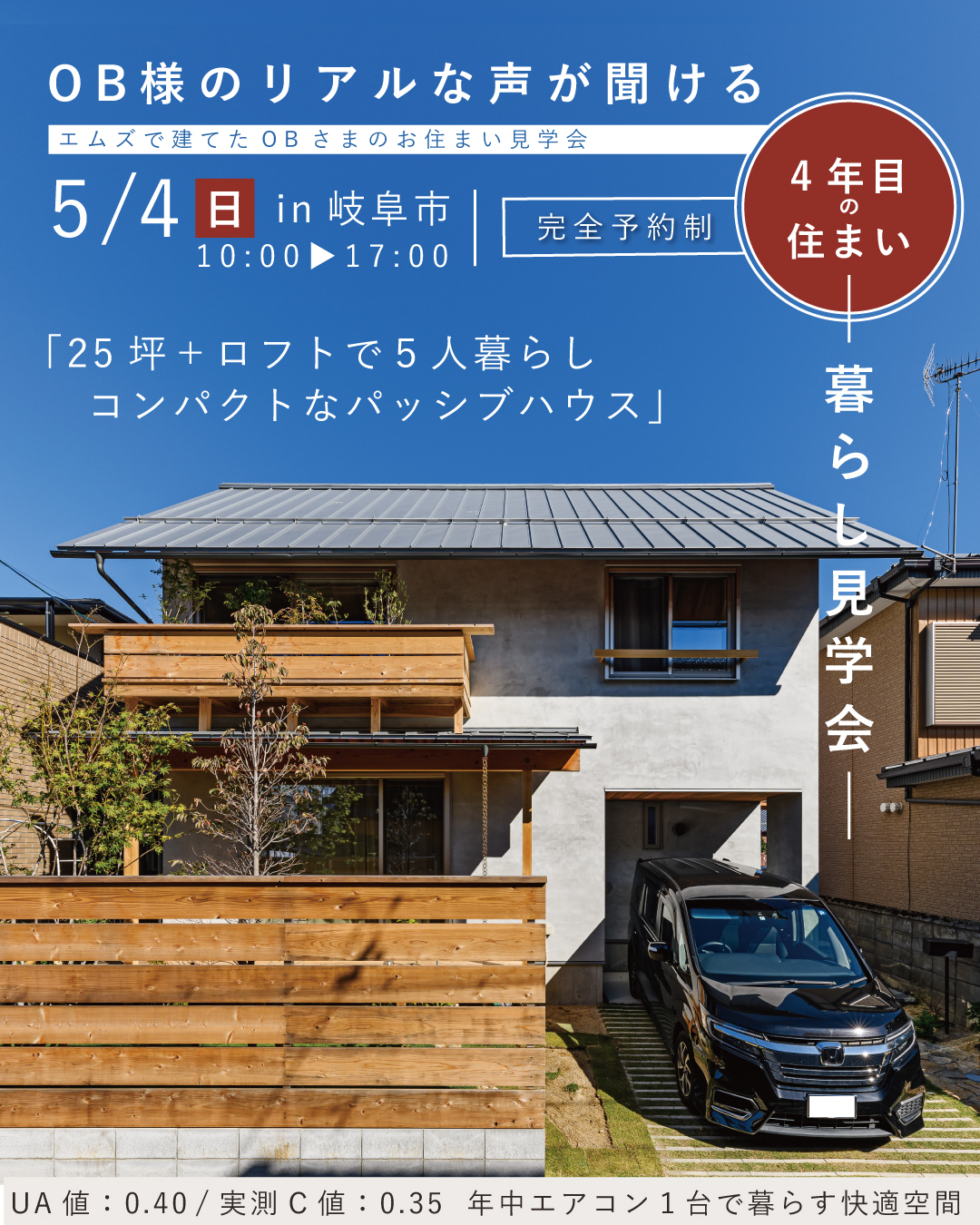 実は、OB様の実際のお暮らしを見学いただける見学会を、5月に2件のお住まいにて開催をさせていただきます!!