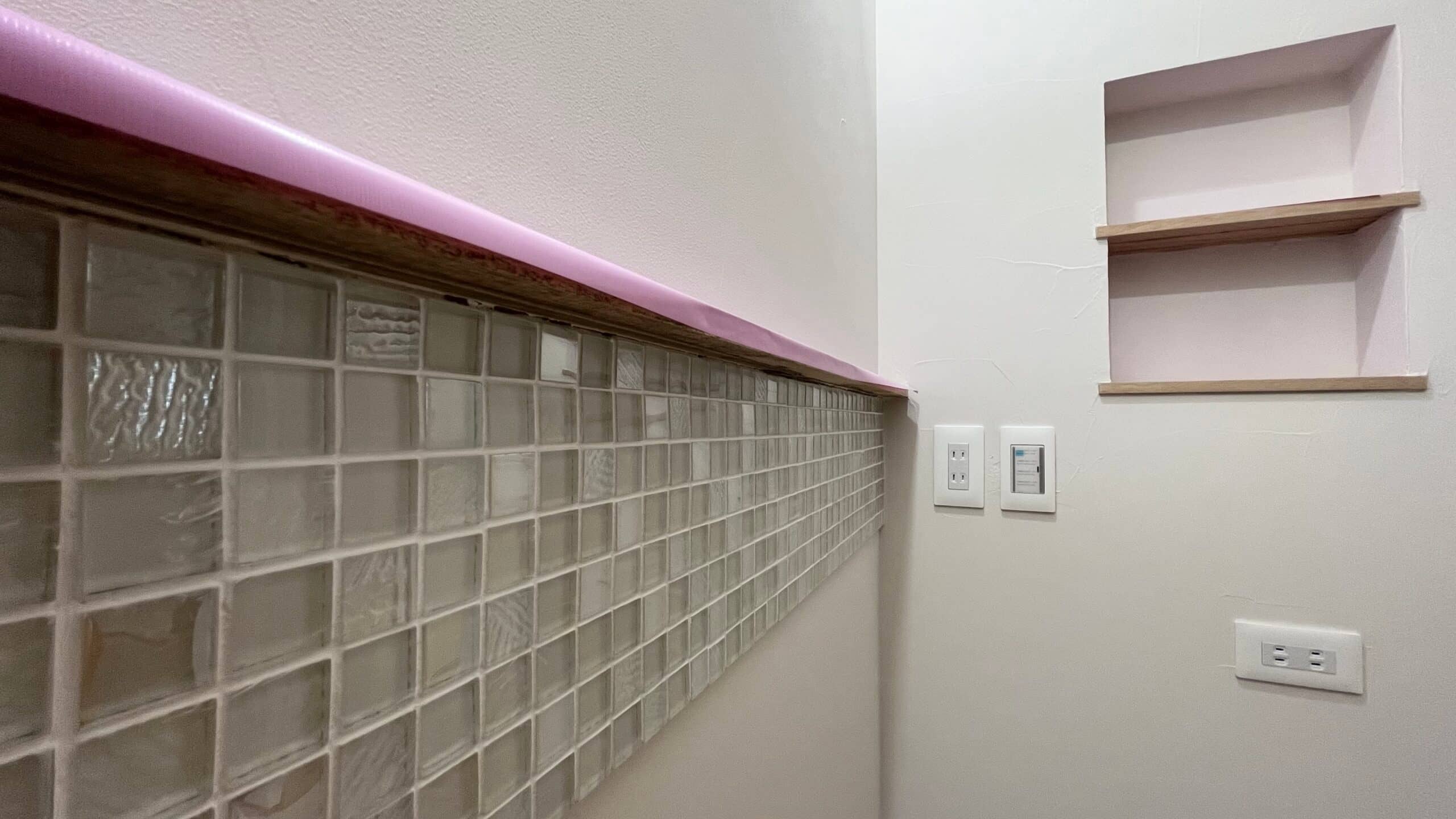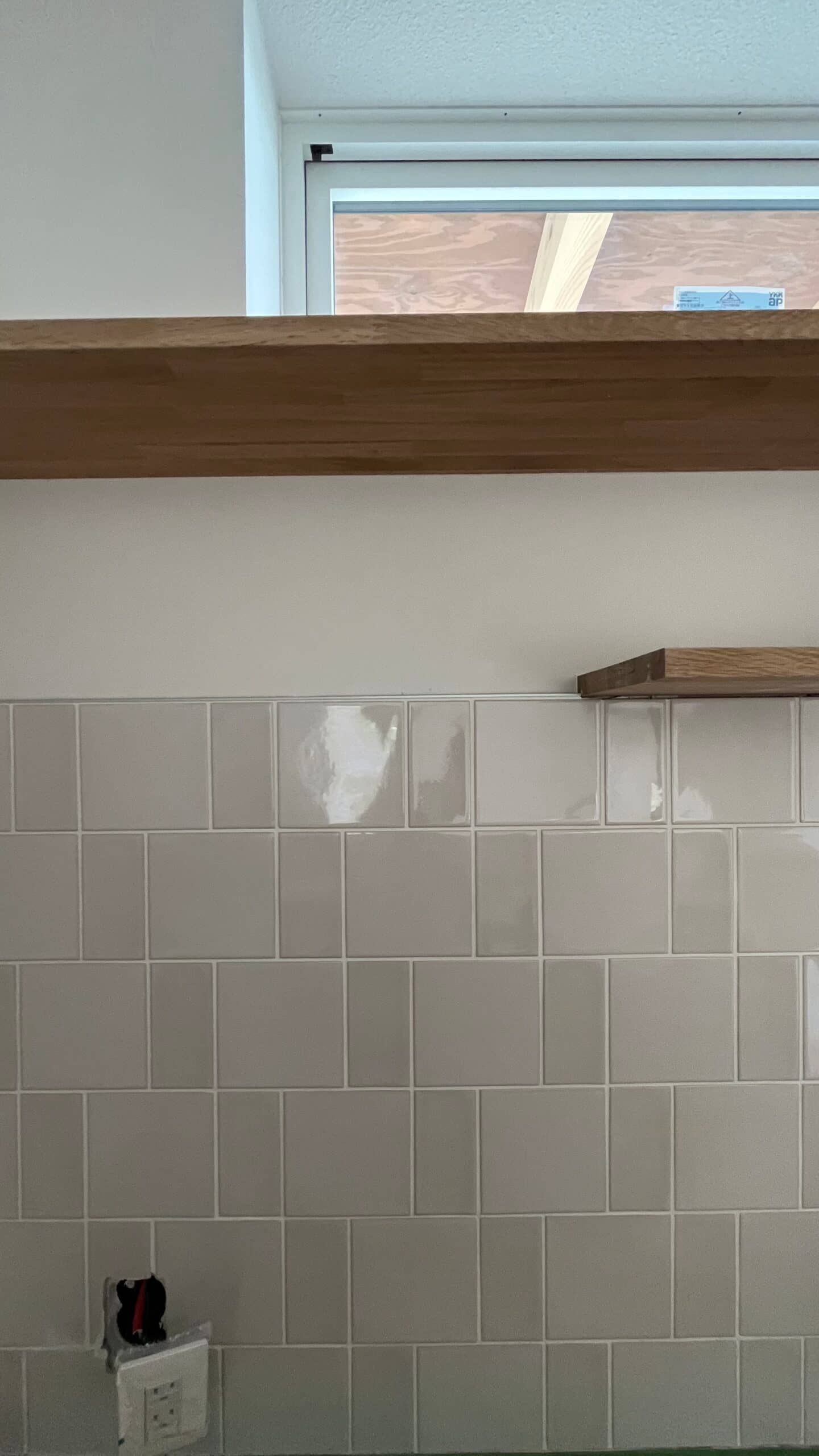 グレーやホワイトのタイルたちが、室内の塗り壁の白と調和しています✨