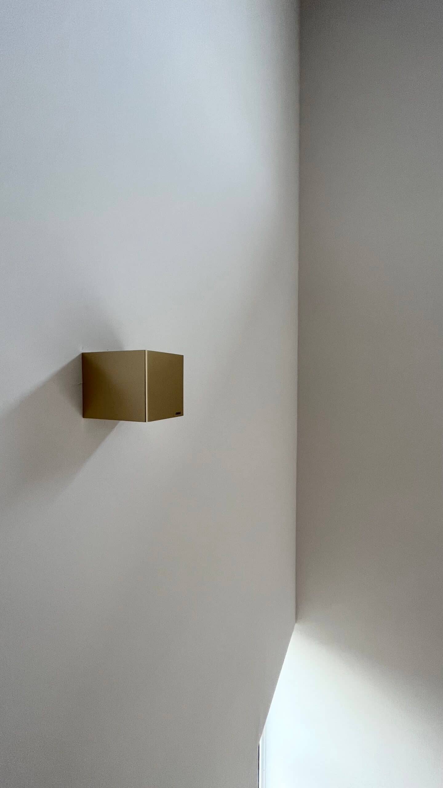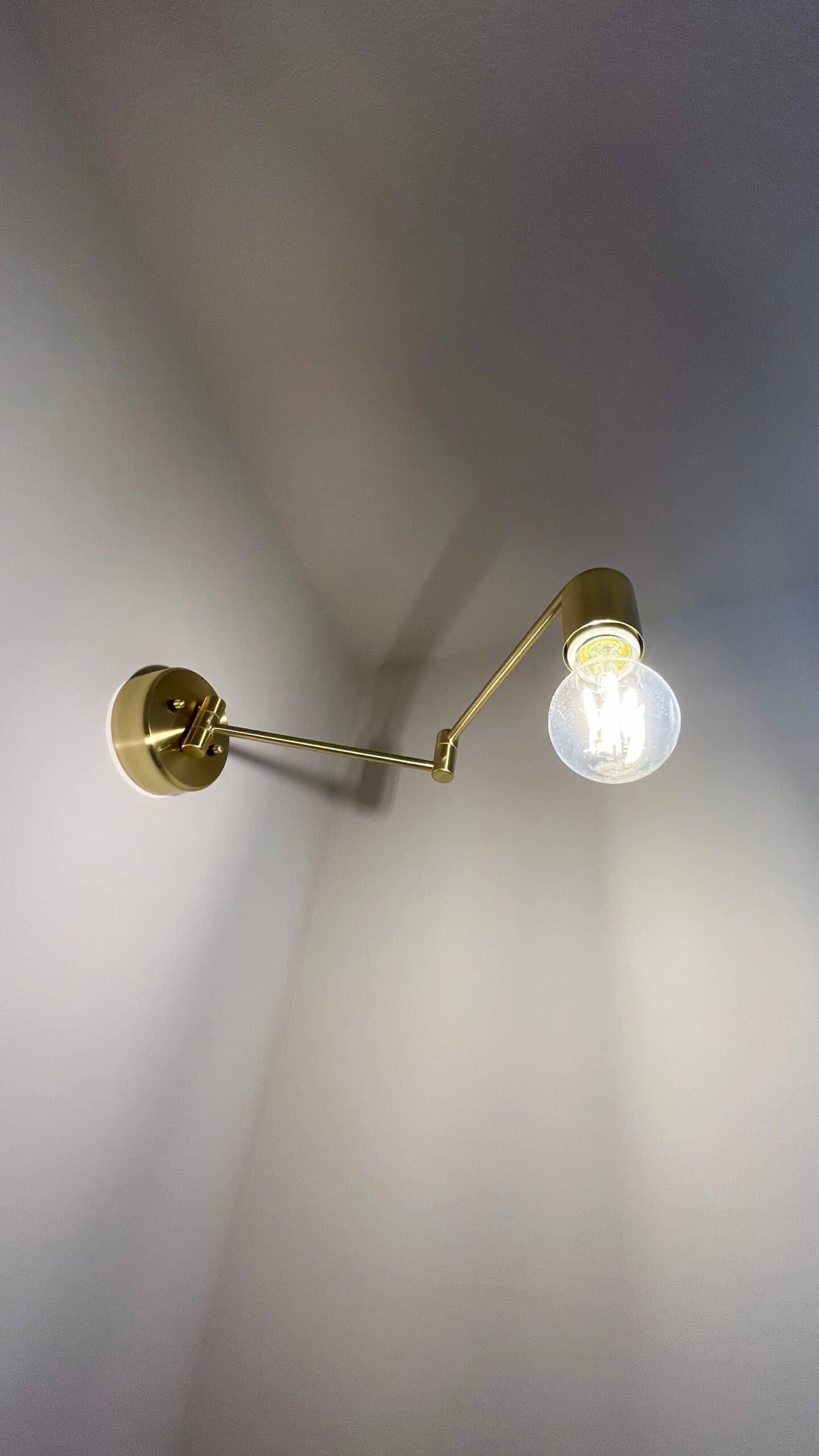 小さな照明ですが、白いぬりかべにゴールドがとっても映えて、存在感たっぷりです♩