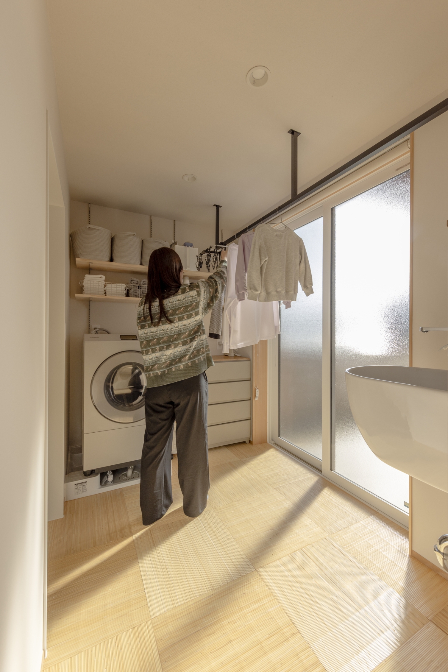 床に敷かれた藤タイルのさらりとした肌触りも心地よく、脱衣室全体が奥様のお気に入りの場所になっているのだそうです。