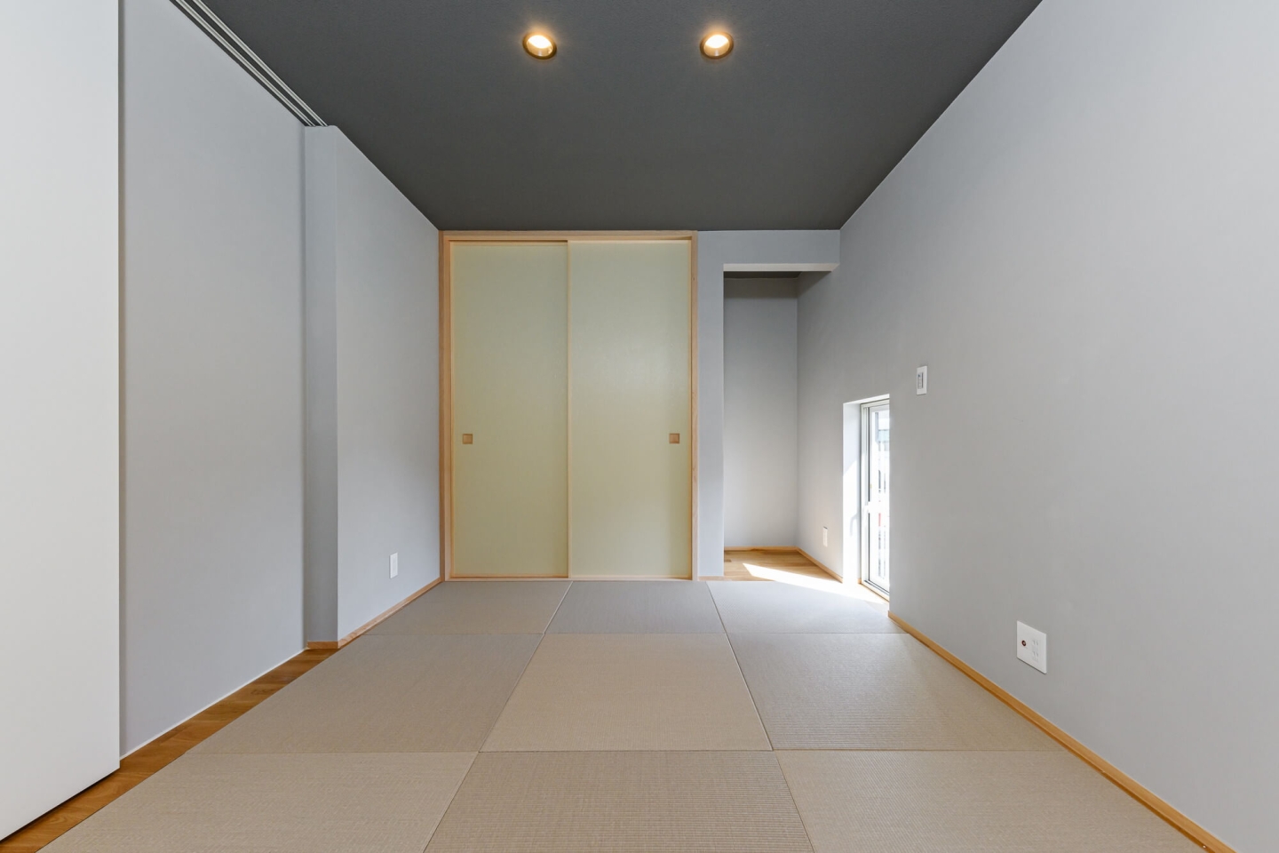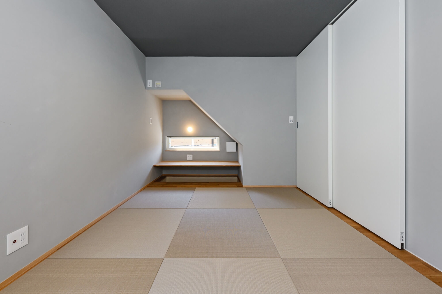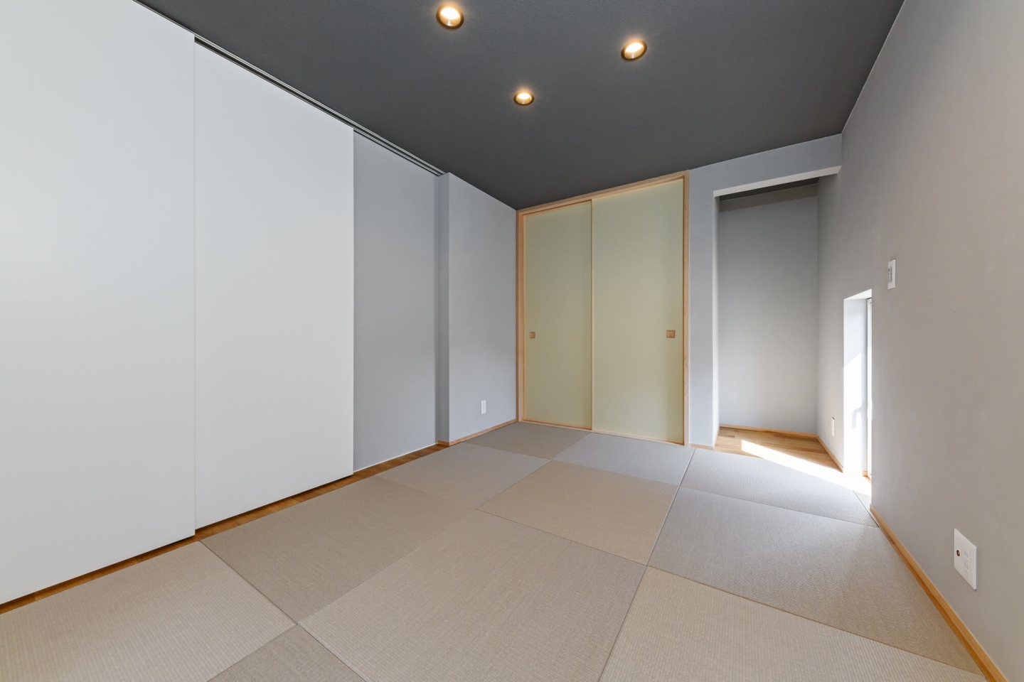 リビング横には6帖の和室を設置。こちらもLDKと統一感が出るようにモダンで落ち着いたカラーで仕上げました。将来はこちらの和室を使用して平屋暮らしをすることも可能です。