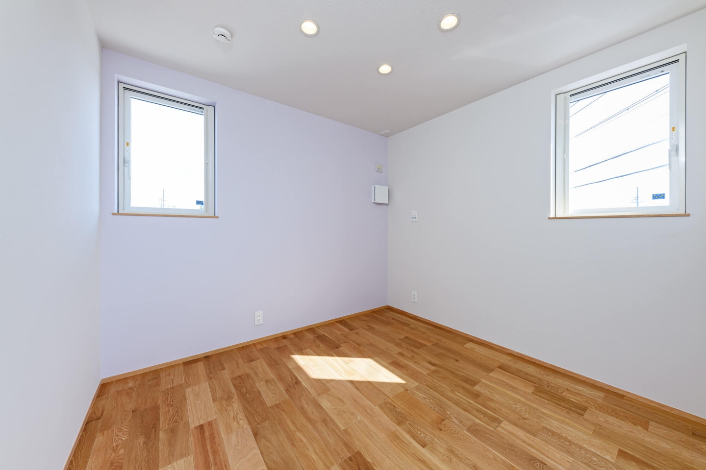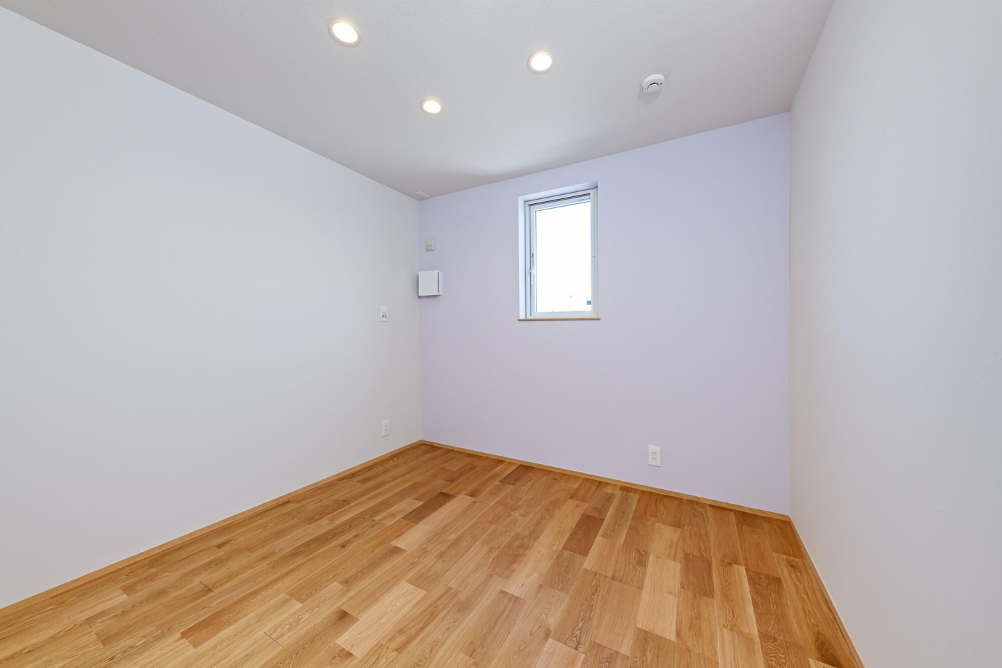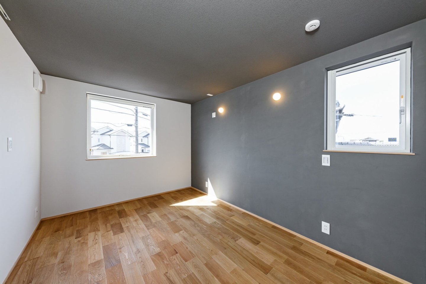 リビング横には6帖の和室を設置。こちらもLDKと統一感が出るようにモダンで落ち着いたカラーで仕上げました。将来はこちらの和室を使用して平屋暮らしをすることも可能です。
