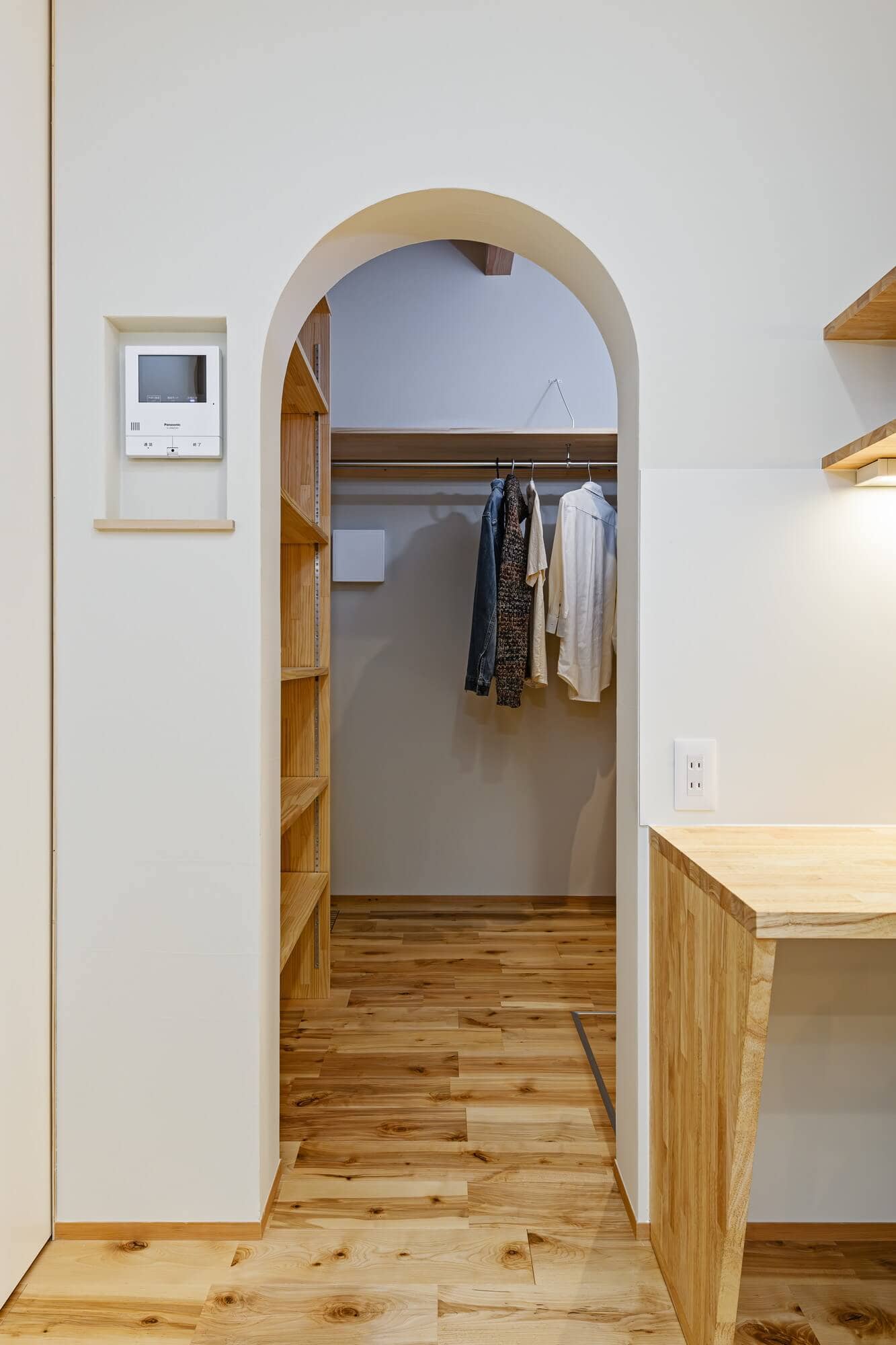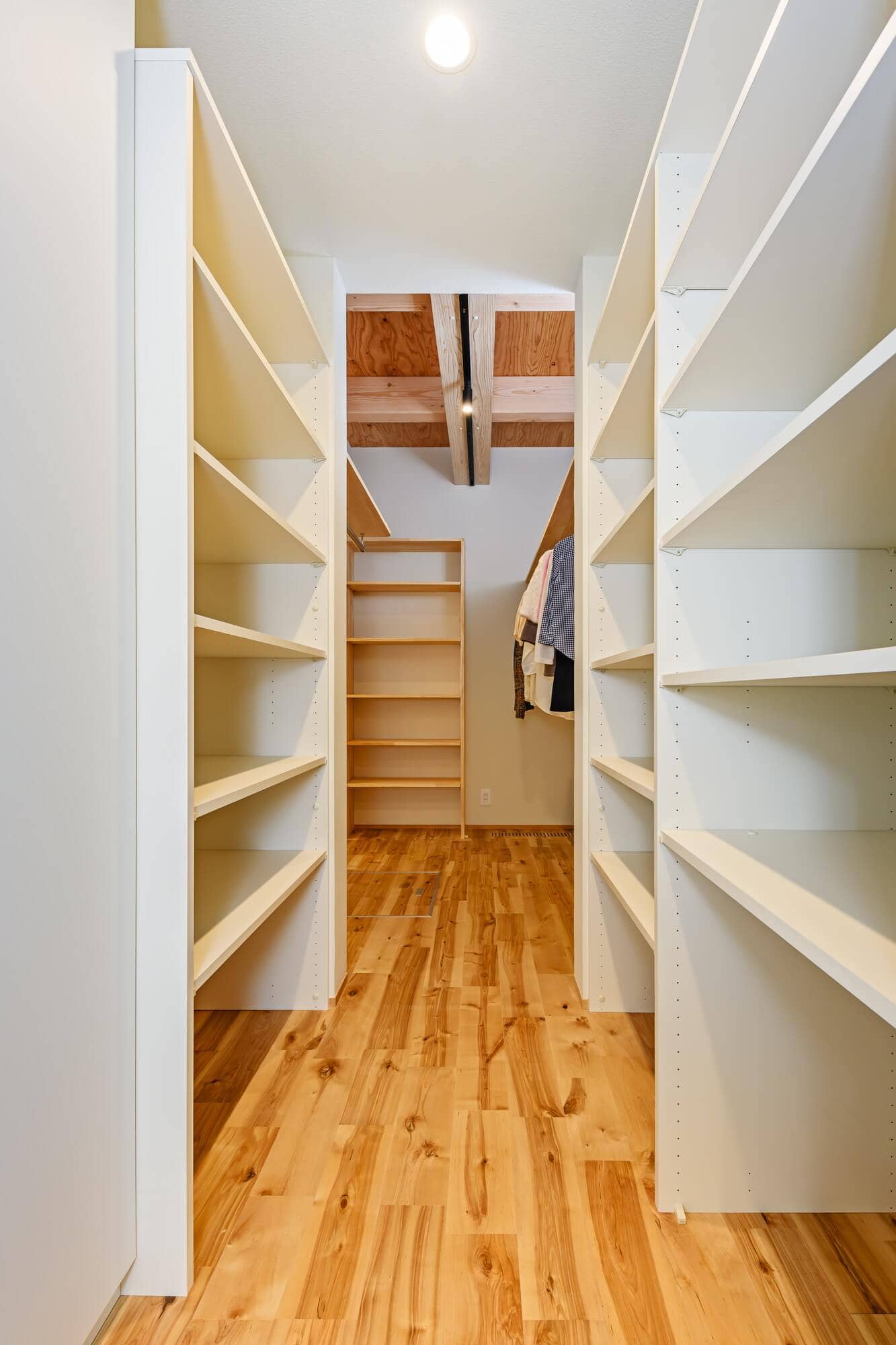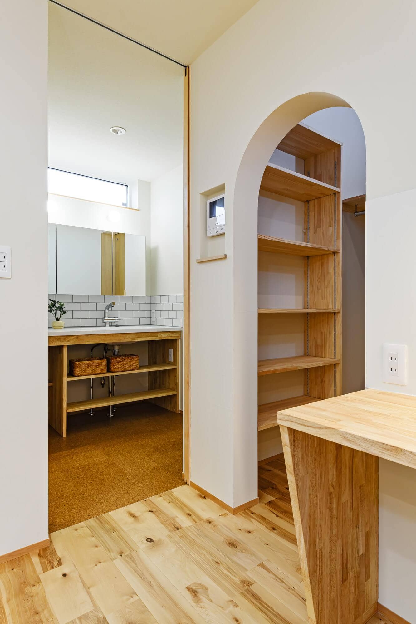 玄関に入ると、玄関収納のほかパントリーも配置したので、買い物後にすぐに品物をしまうことができる動線を実現。
