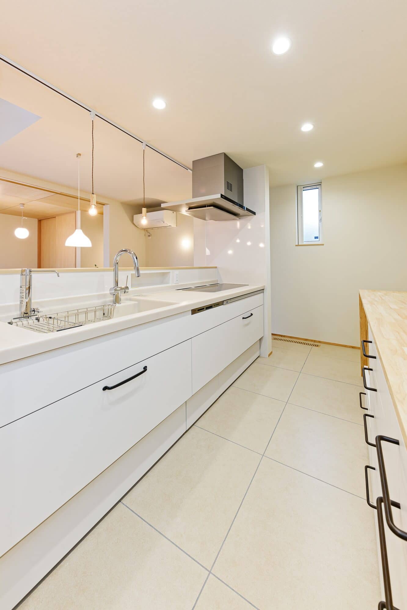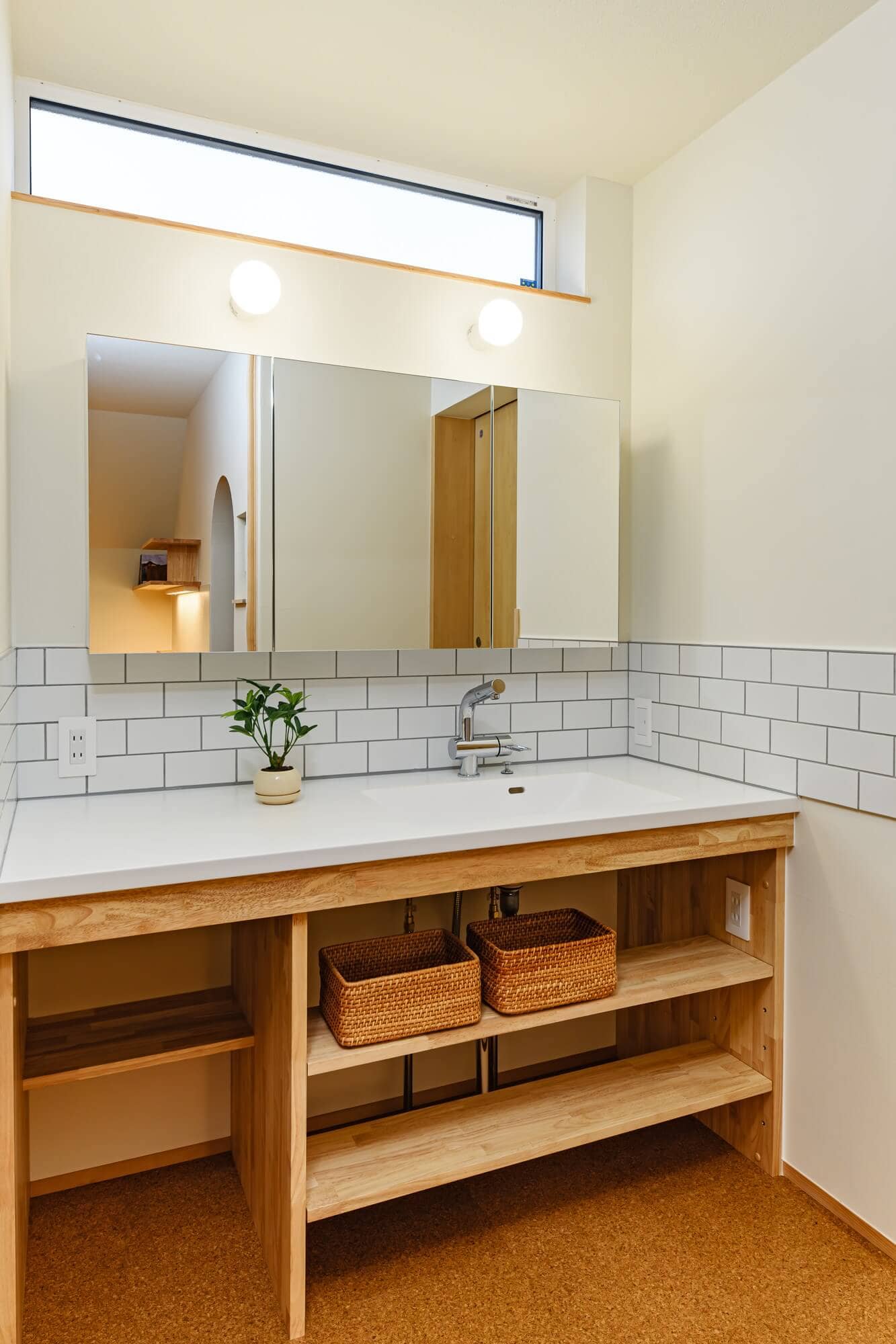 キッチン・洗面・脱衣室が一か所にまとまっているので、家事楽な水回り動線になりました。