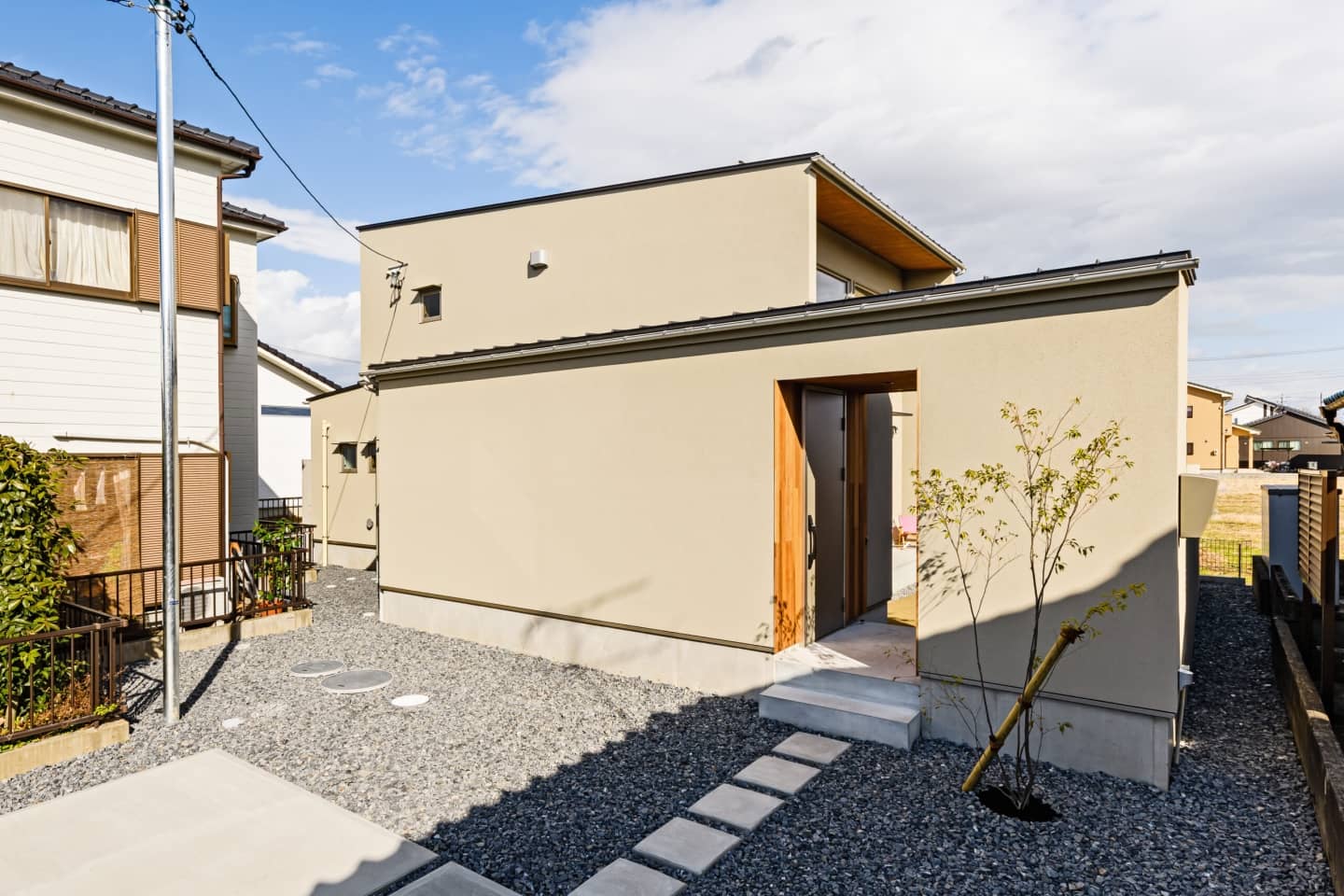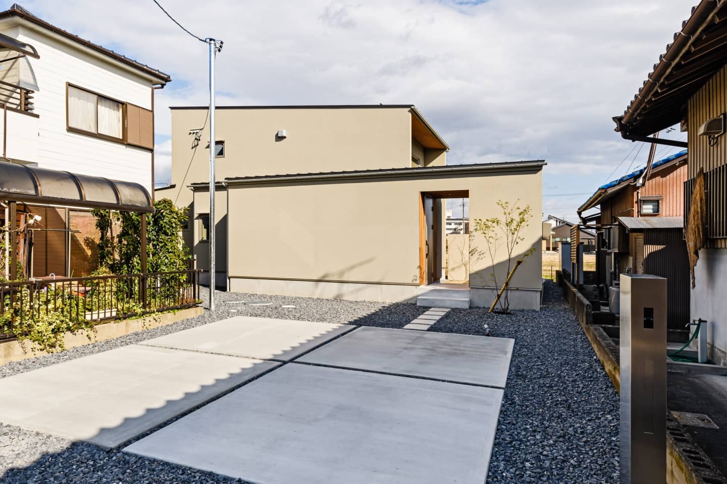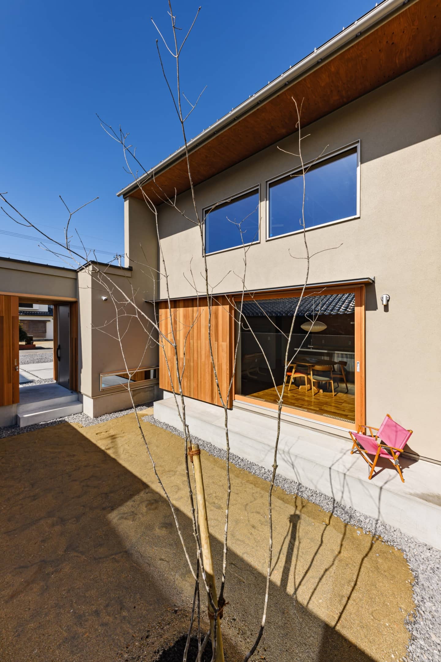 塀と建物に囲まれた庭はプライベート感のある中庭のような空間に。