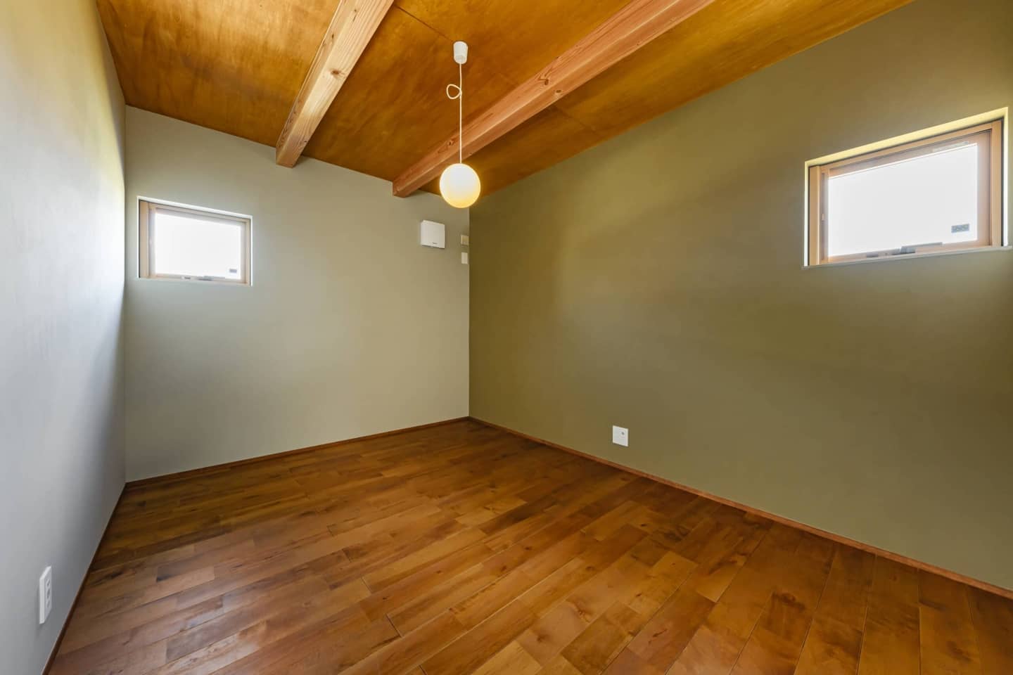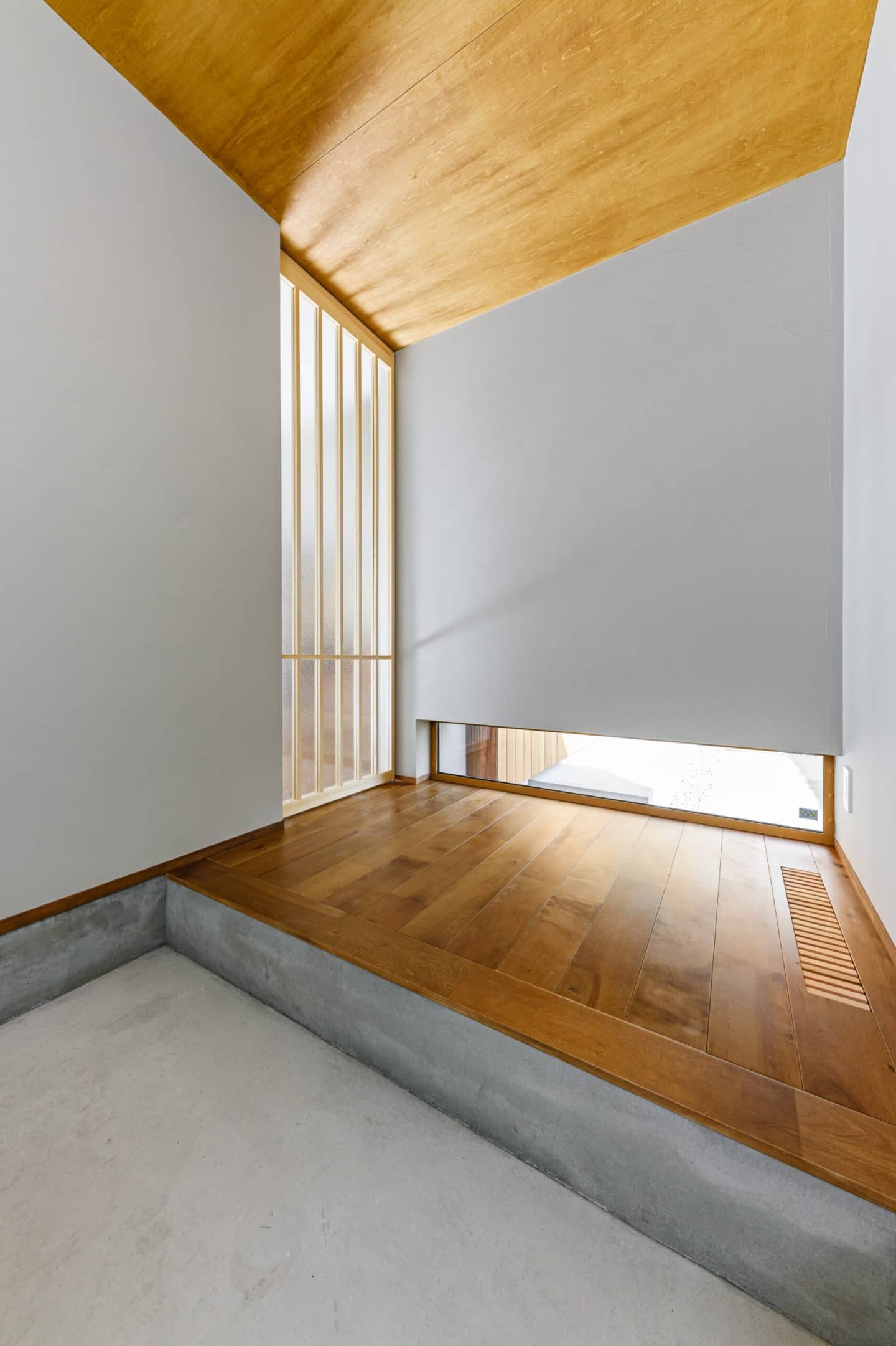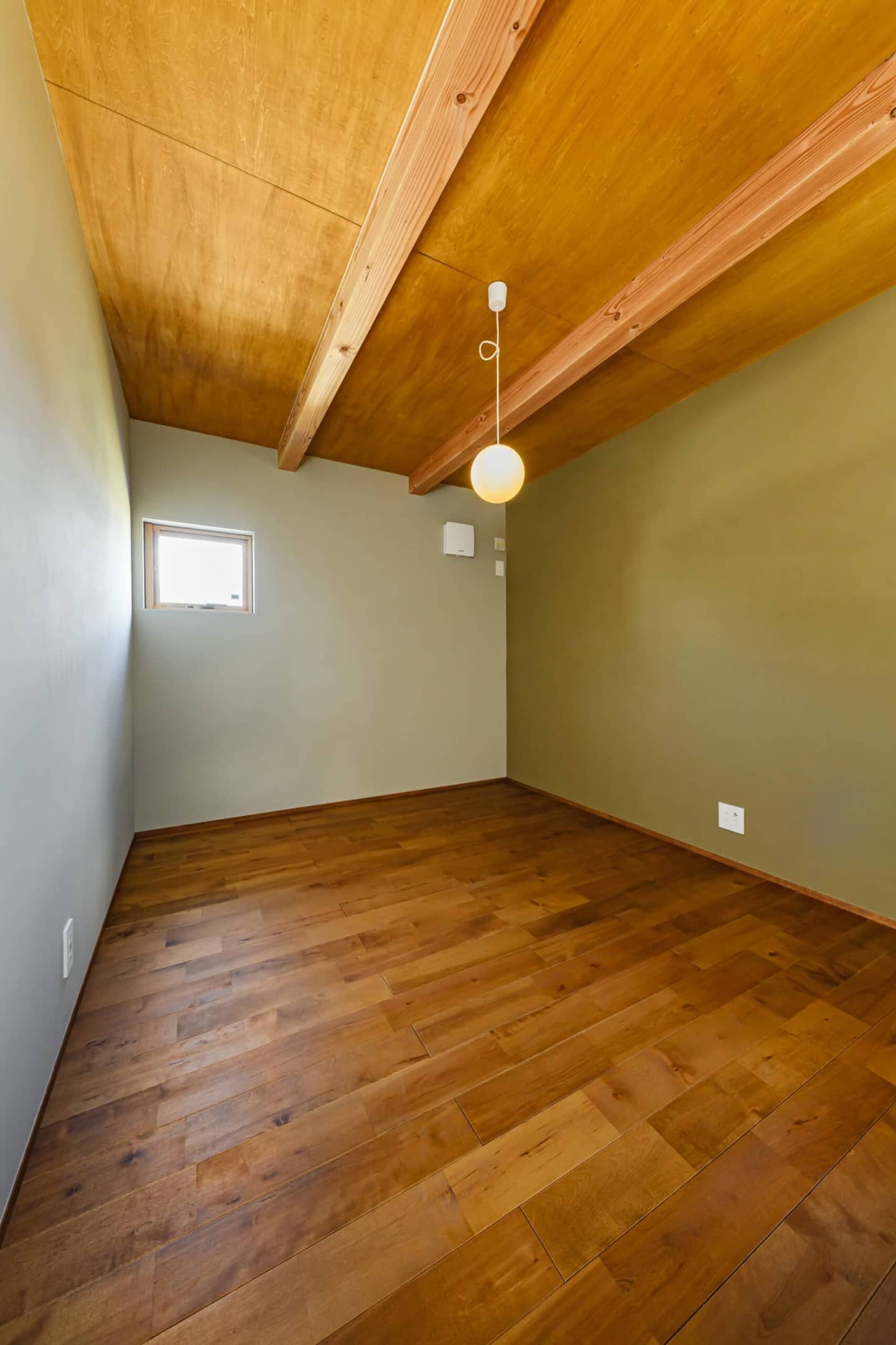 1階には書斎とアトリエを配置し、アトリエは当面は仕事部屋として利用。将来は1階のみで過ごす際の寝室利用も想定しています。