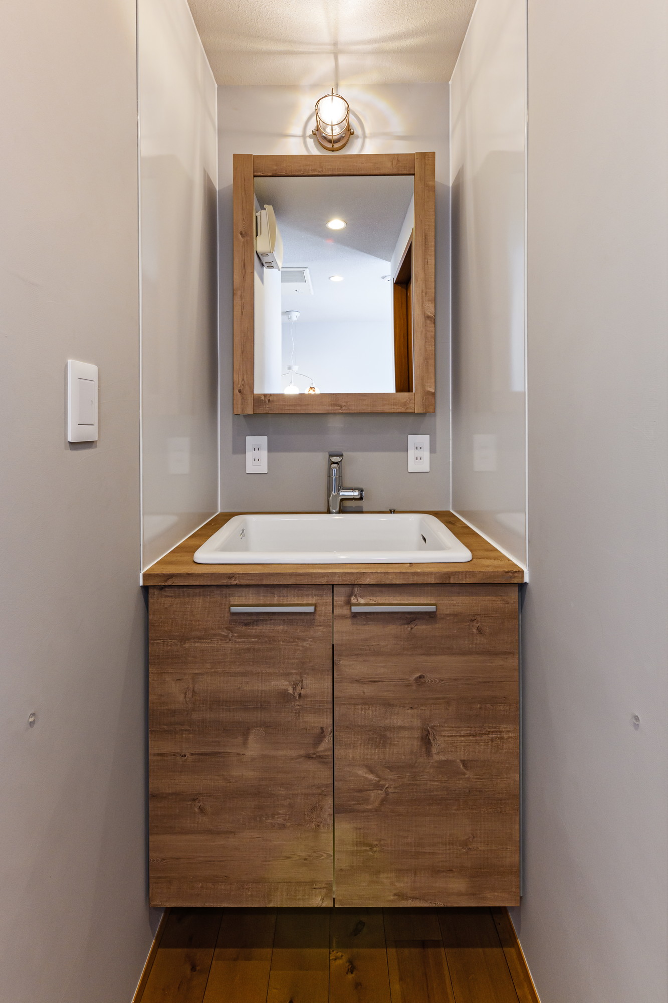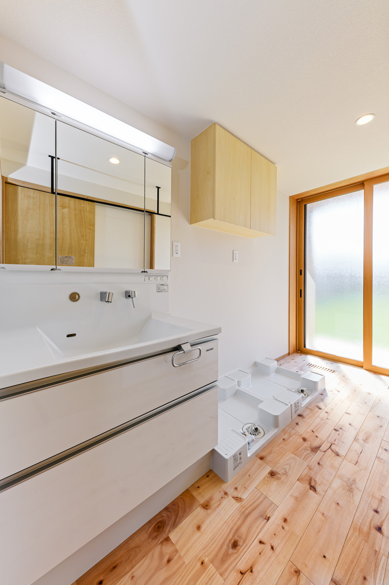 洗面室は広く取り外干しも2ヵ所で干せるようにしています。