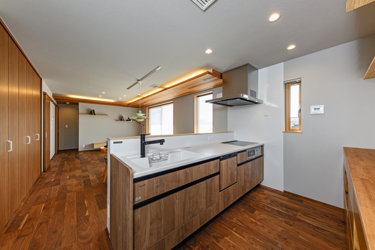 1Fには床下エアコン、2Fには天井裏エアコンを設置し、夏も冬もどの部屋にいても快適に暮らしていけるようにしました。