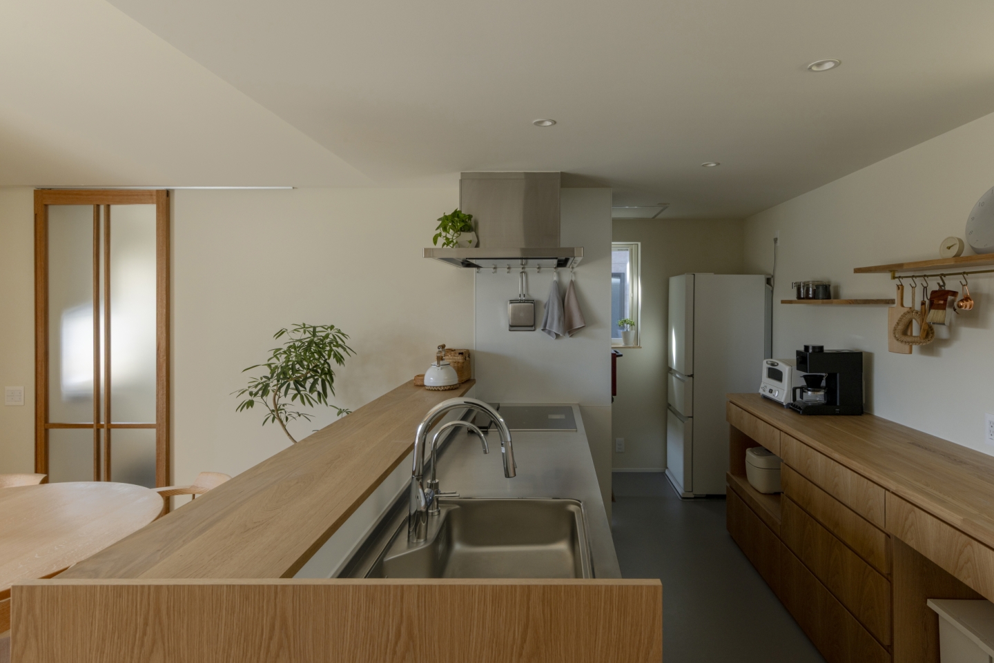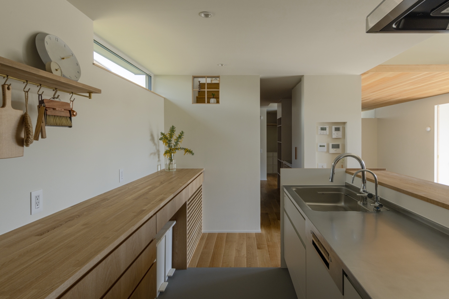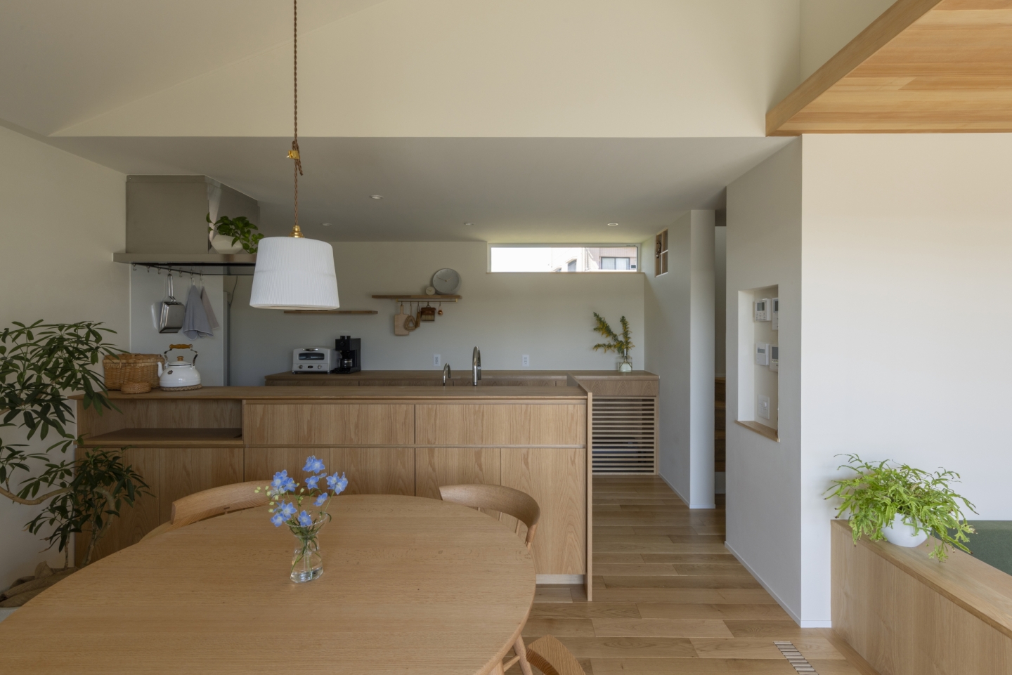キッチン・ダイニング・リビングはそれぞれ天井の高さに変化をつけました。