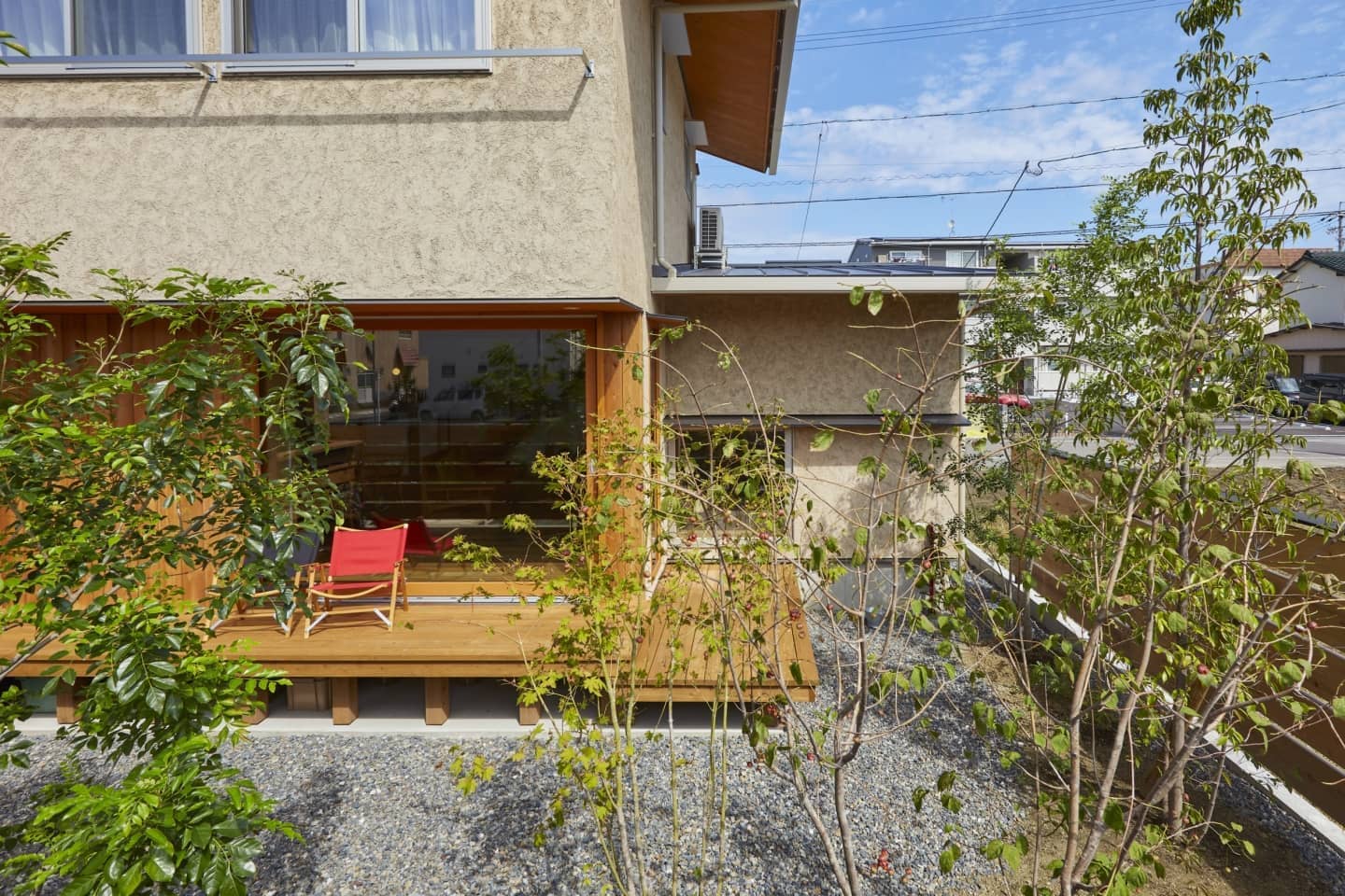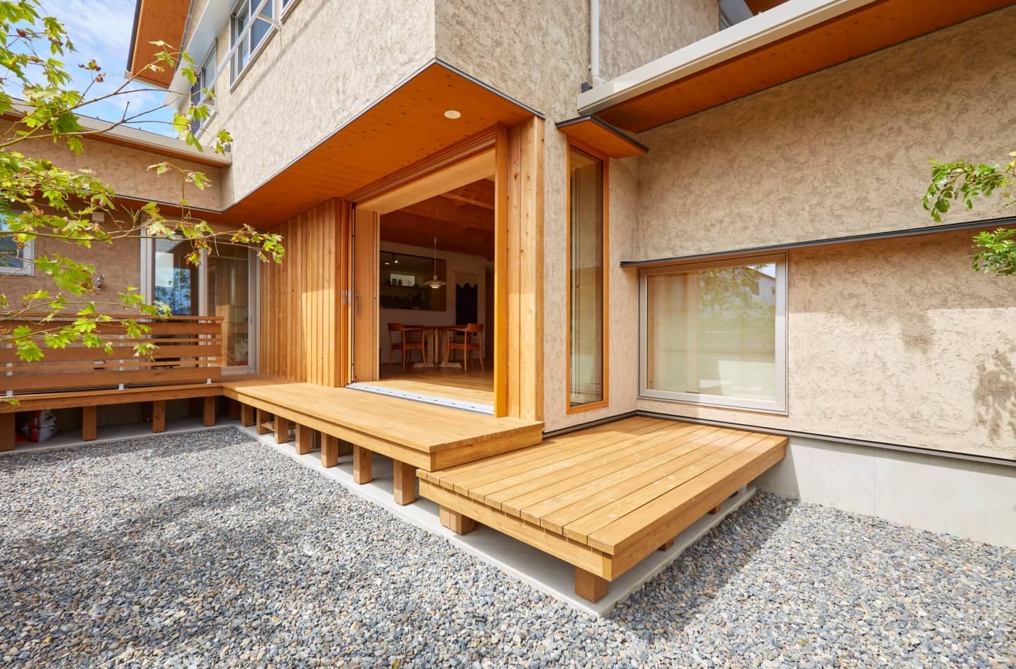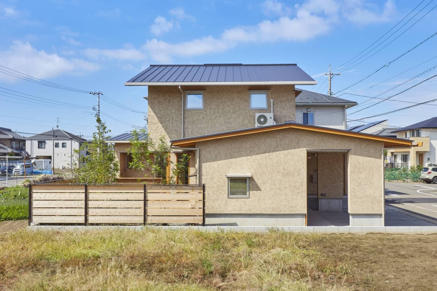 外壁はエムズ初採用の「そとん壁 スチロゴテ仕上げ」。木材と相性バッチリです。