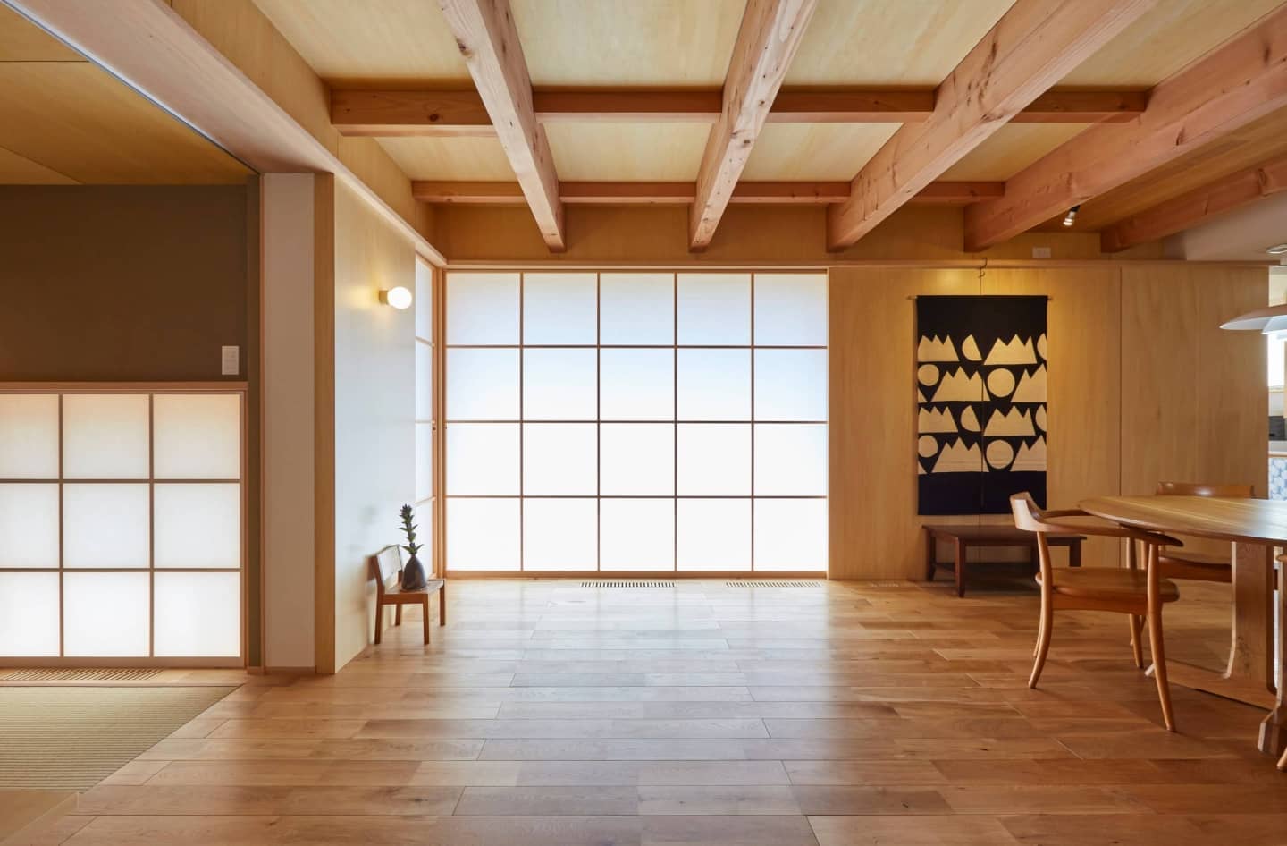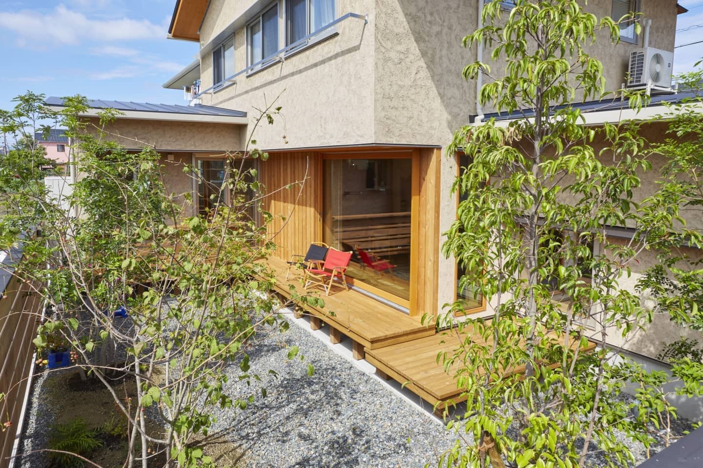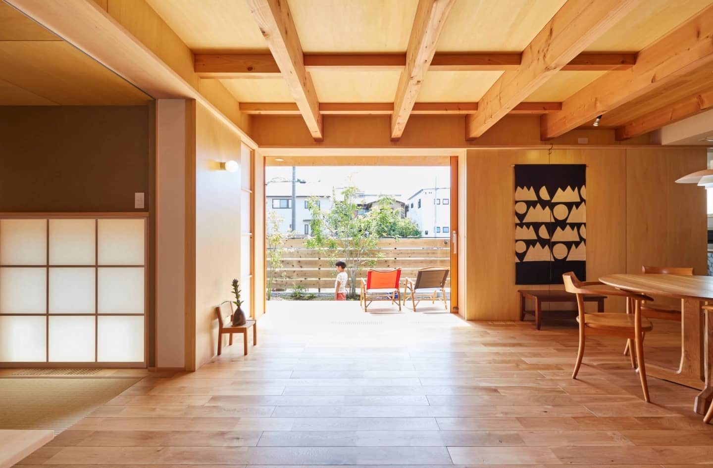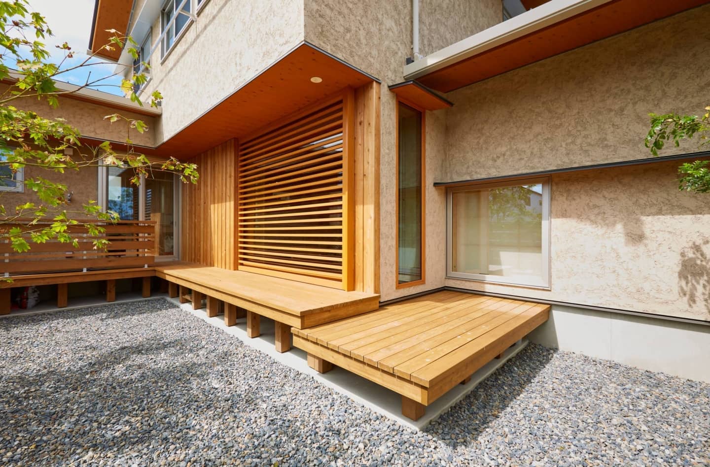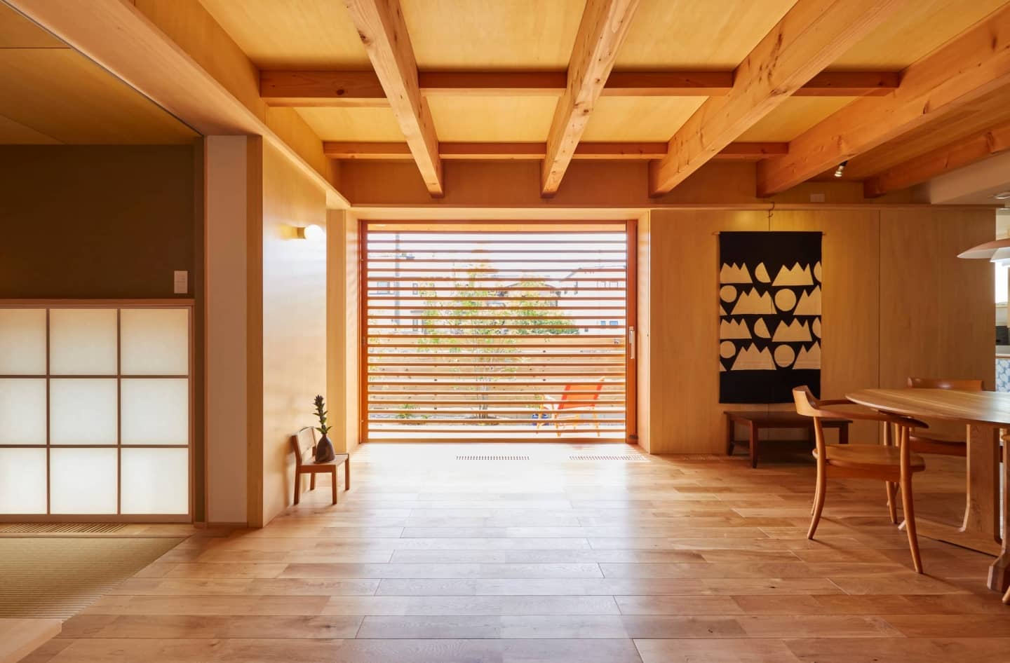 外にはガラリもあり、木のナチュラルな雰囲気は崩さずに大開口でも目隠しをしっかりできるようになりました。