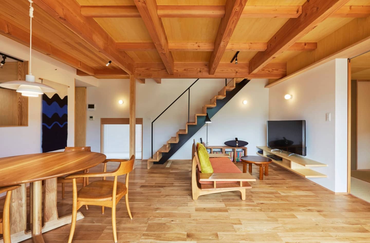 モデルハウス同様に大開口の木製サッシが特徴的なリビング。
