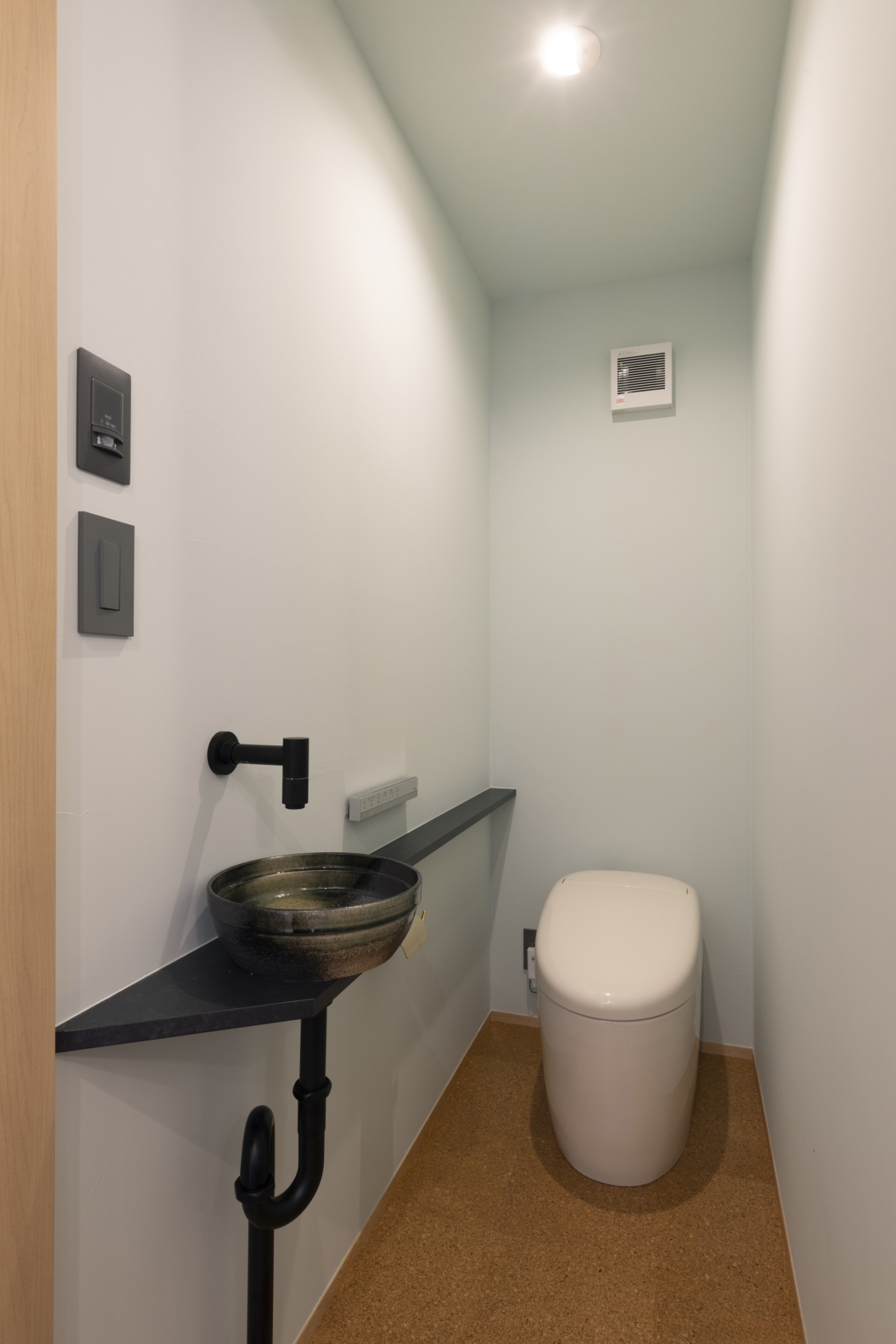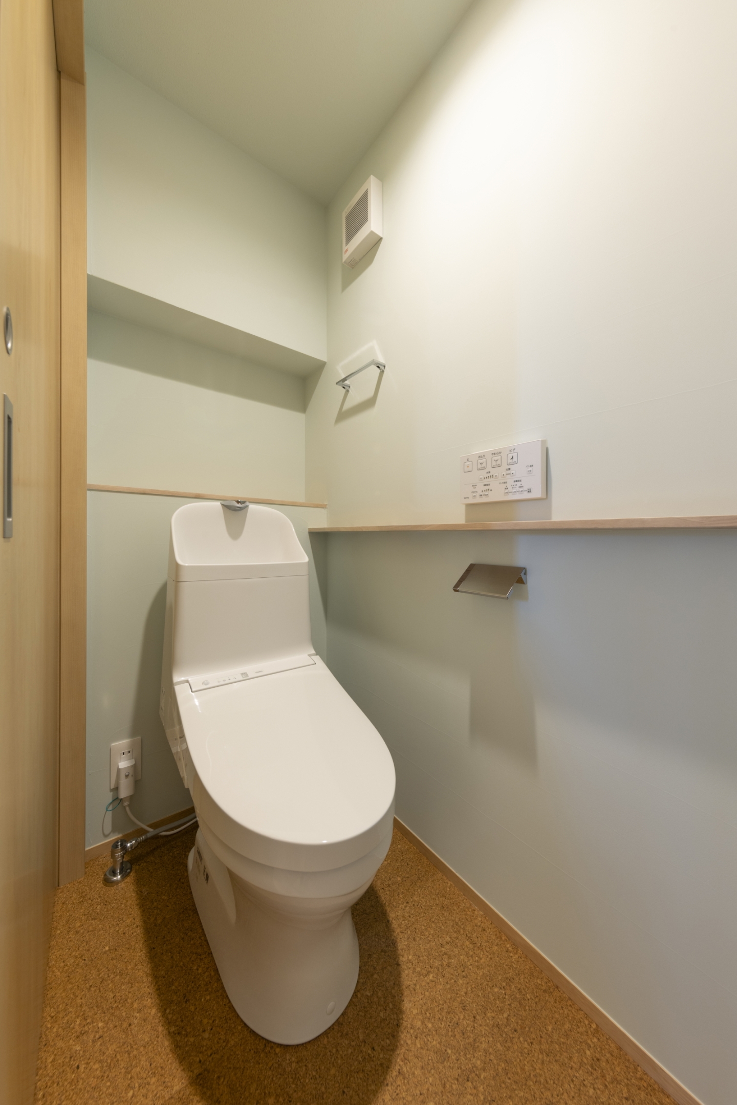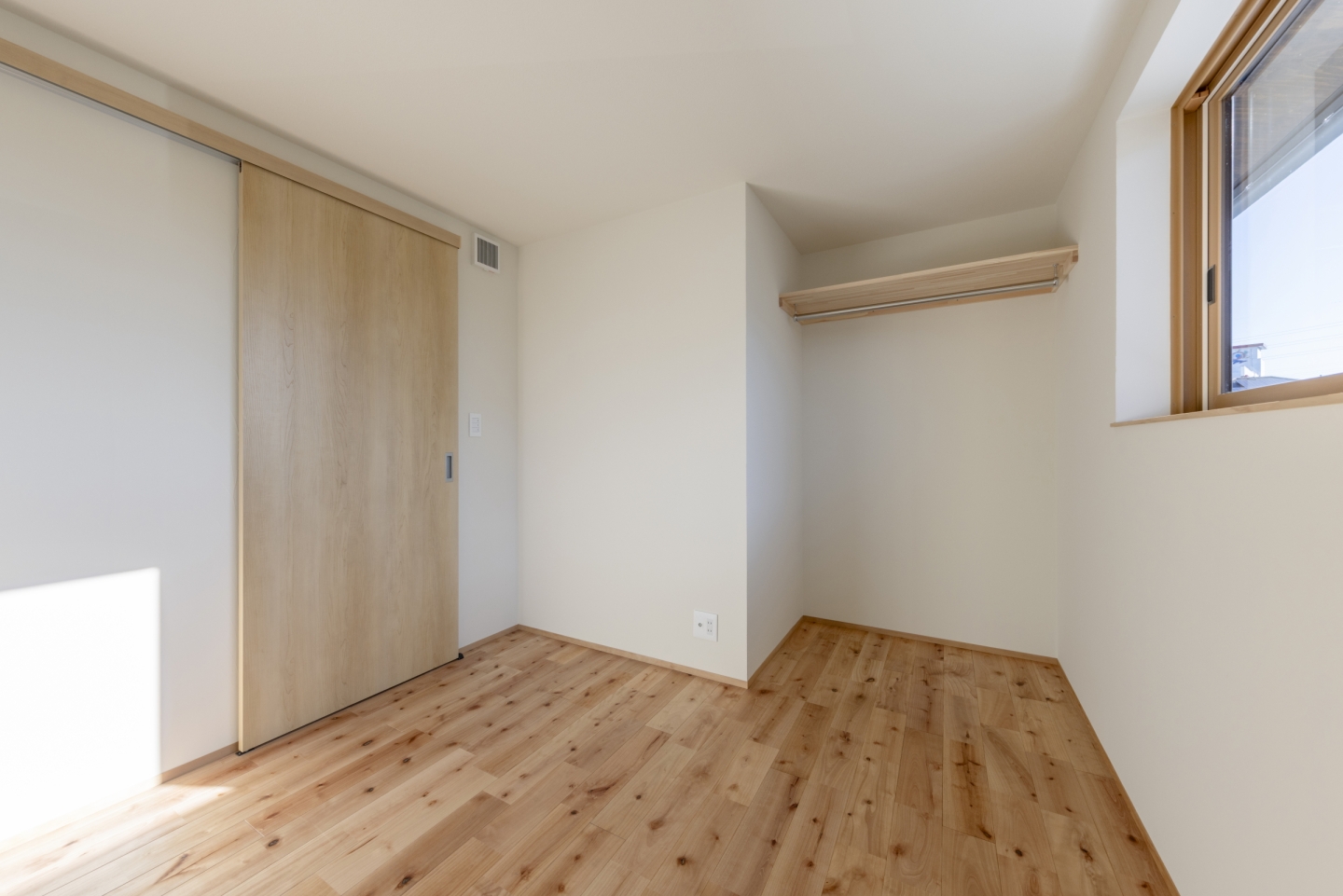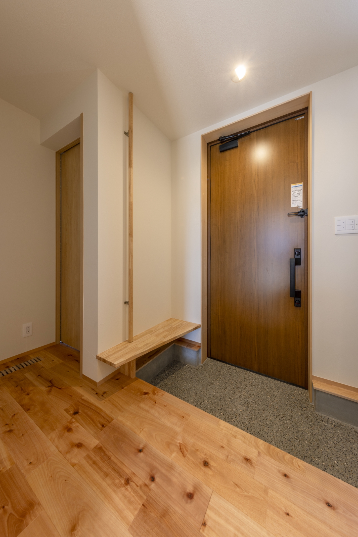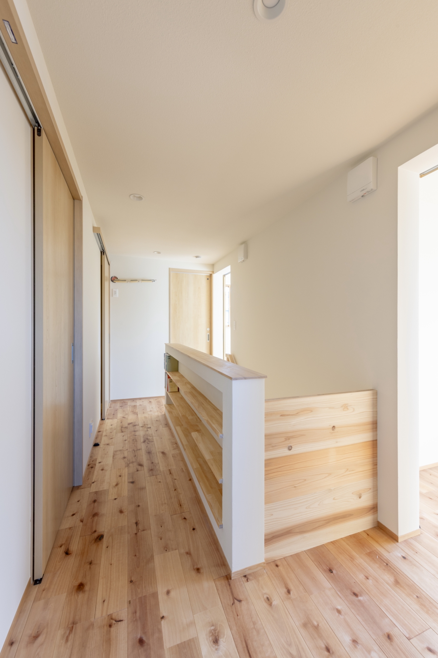 1Fは床置きエアコン、2Fは廊下に設置した1台のエアコンで全室をまかなうことができる空調計画で、季節を問わず快適に過ごせるお住まいとなりました。
