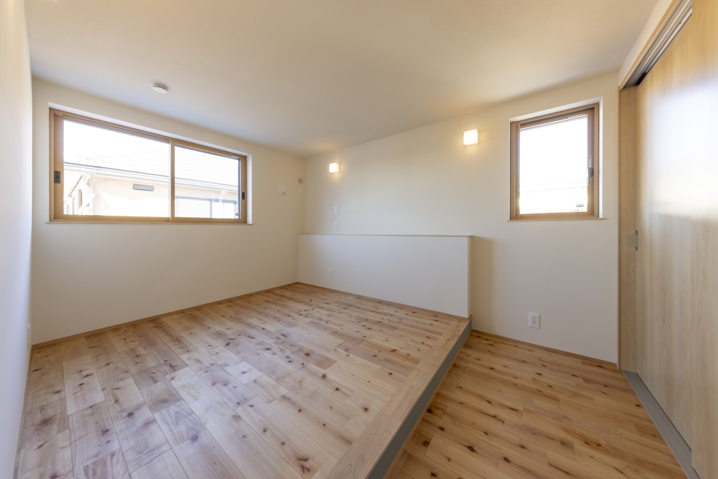寝室は小上がりとして、布団を敷いて寝られるよう計画。