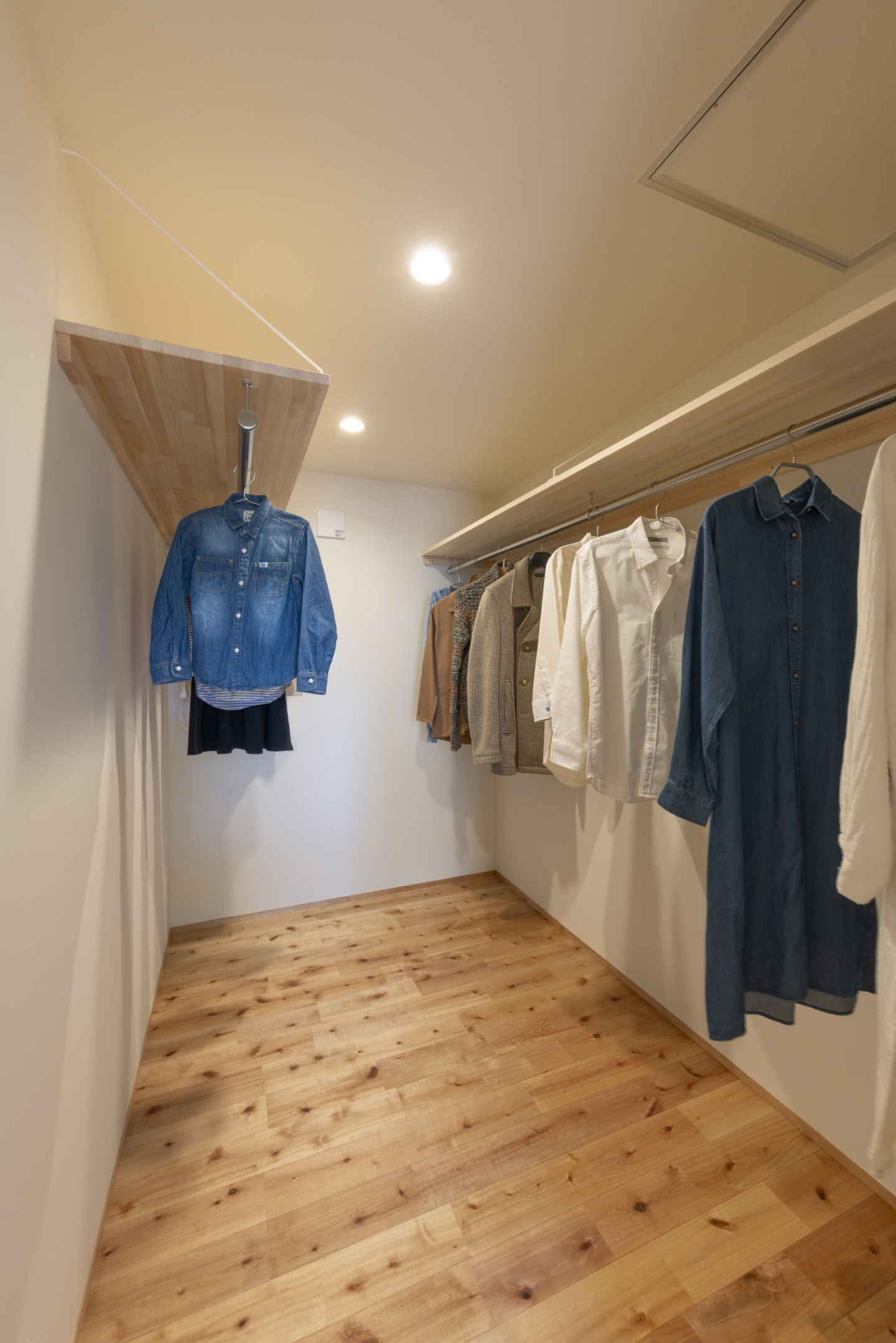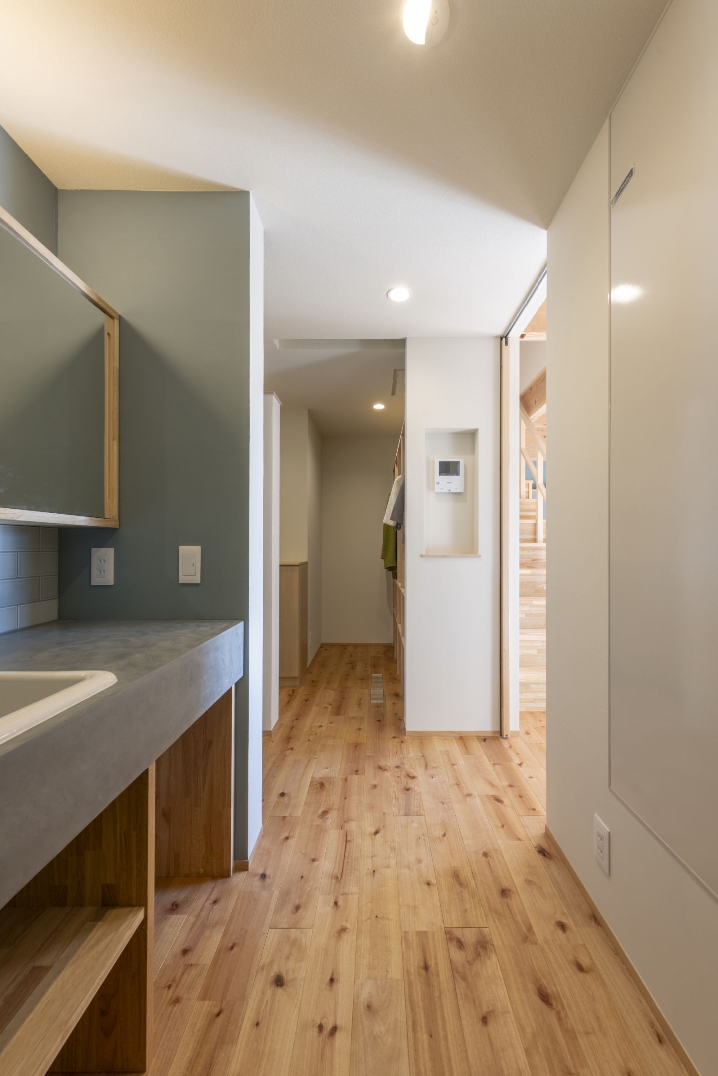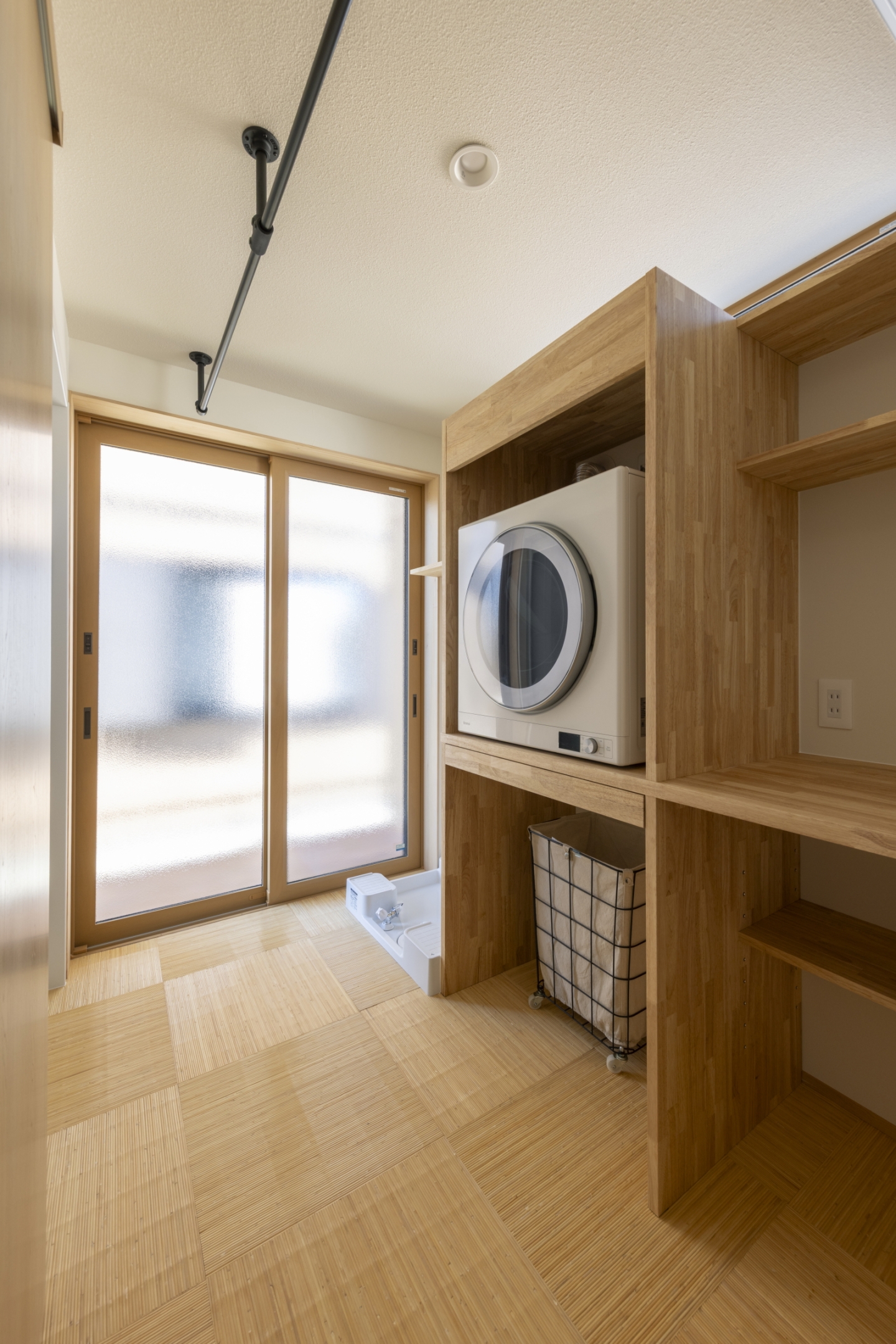 水回りは一か所にまとめ、ランドリーは外干し・内干し・乾燥機干しをすべて完結できる計画に。天候や時間に左右されず洗濯ができ、家事をスムーズに行えます。