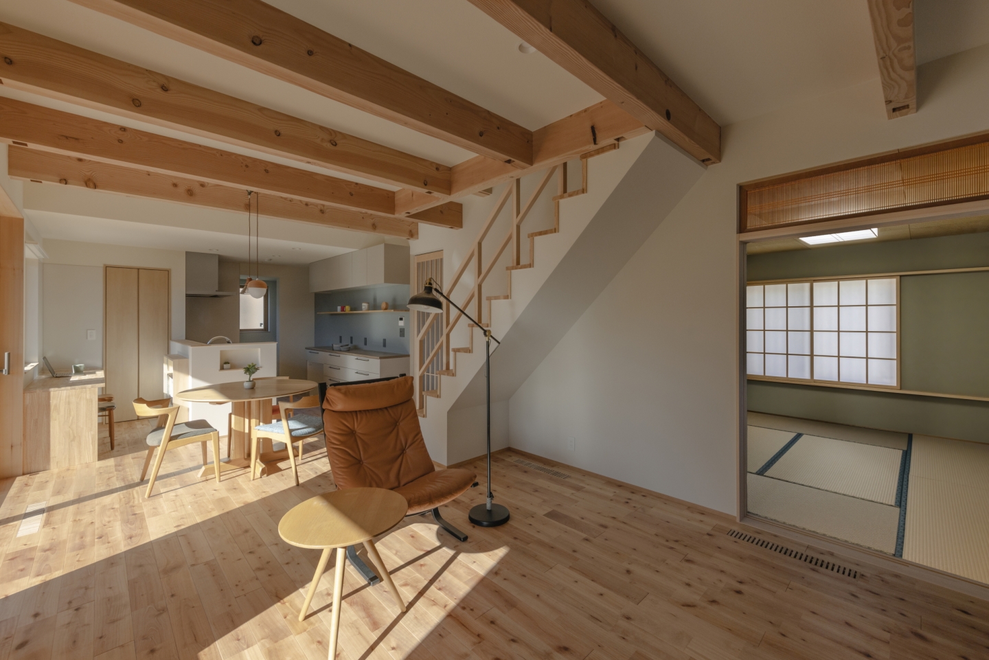 隣接する和室は、開放すればLDKの一部として広々使えます。客間としてはもちろん、寝室としても代用が可能で、将来の暮らしの変化にも柔軟に対応できます。