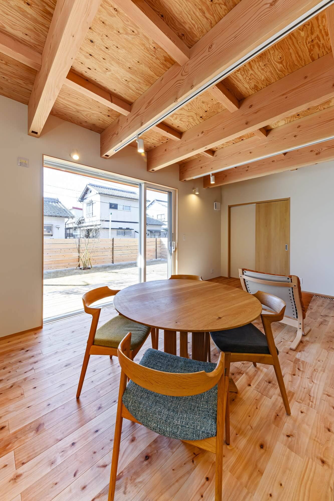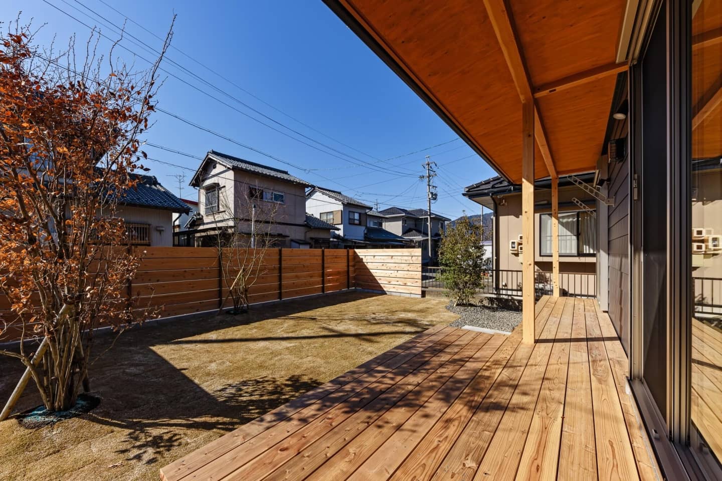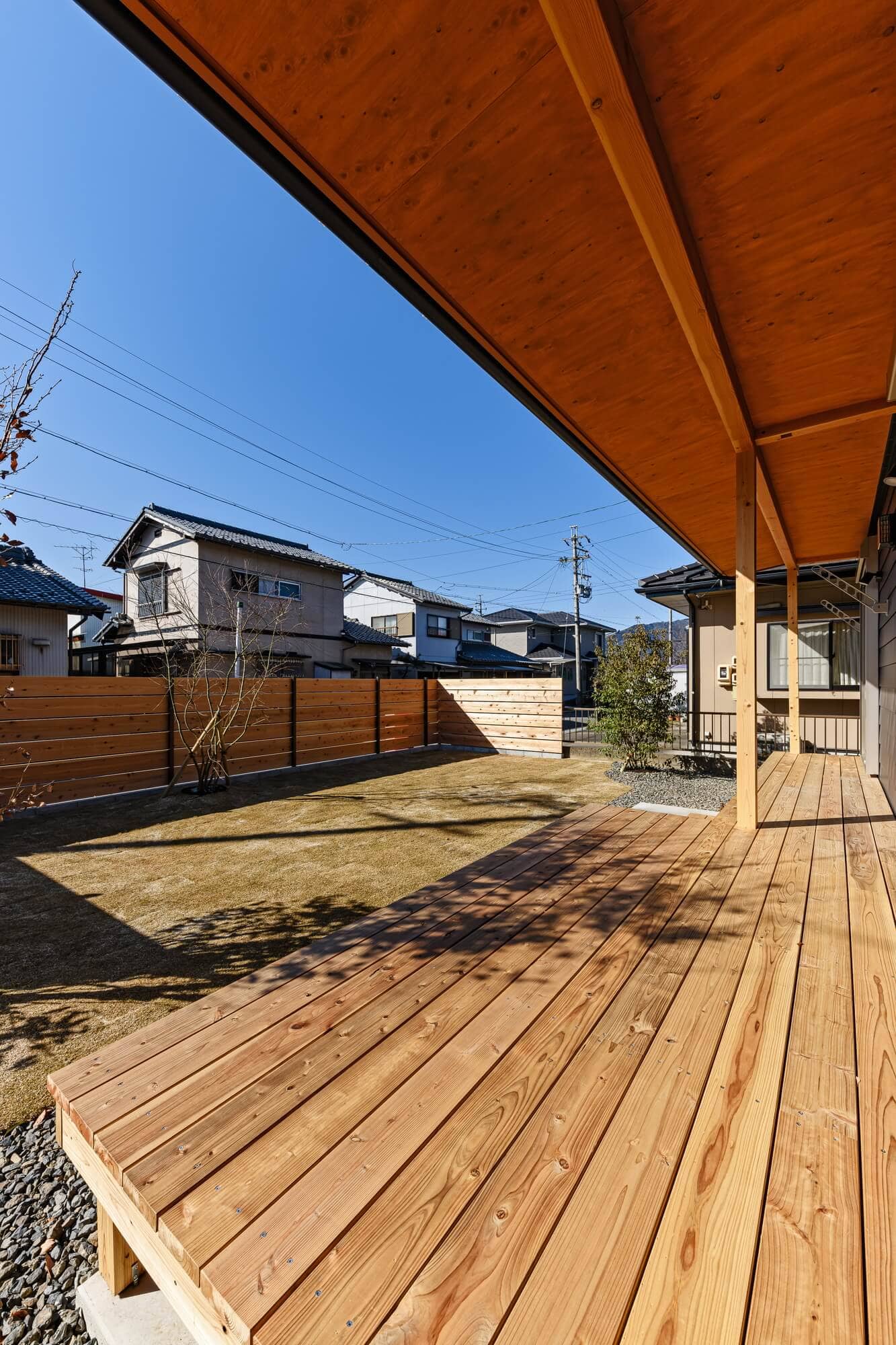 リビングから望めるお庭は、みんなで遊べる大きさのお庭。お子様がのびのびと過ごせるお住まいになりました。