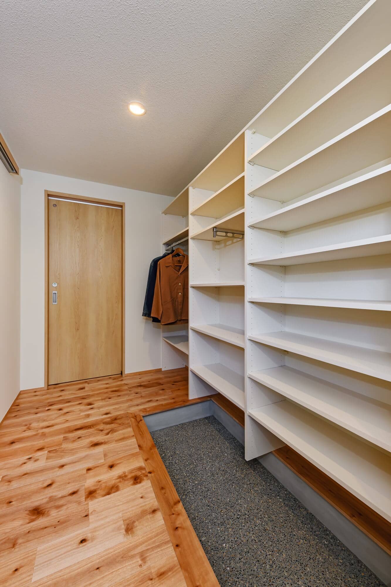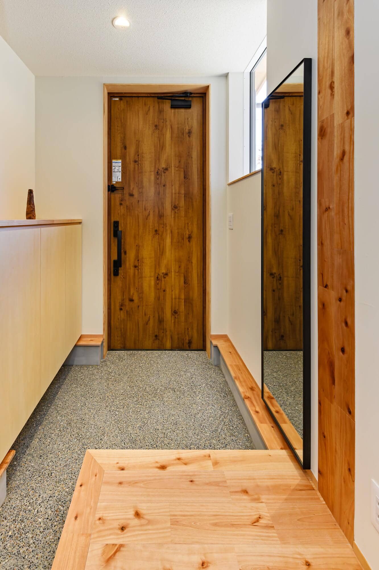玄関は、コンパクトながら細長玄関でみんなで並べるようなレイアウトにしました。