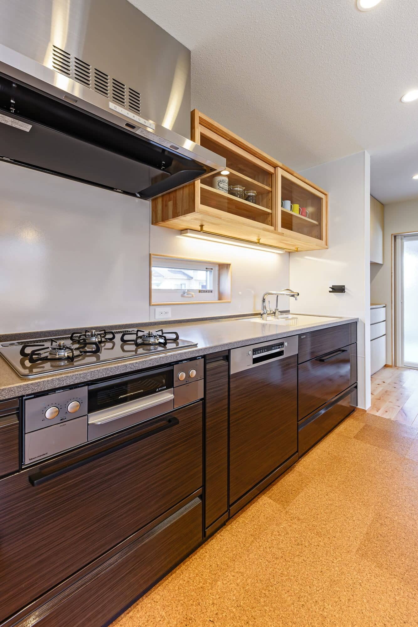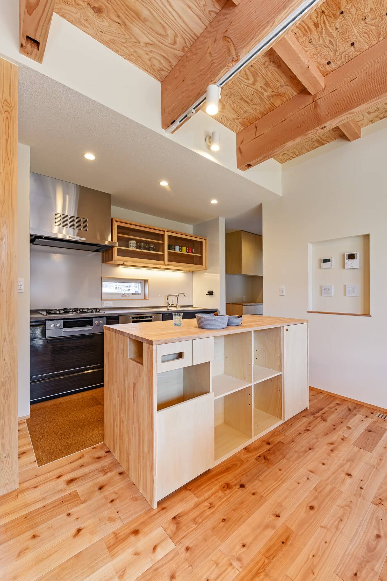 キッチンは壁付けで、コンパクト空間ながら広々と使えるリビング・ダイニングを実現。