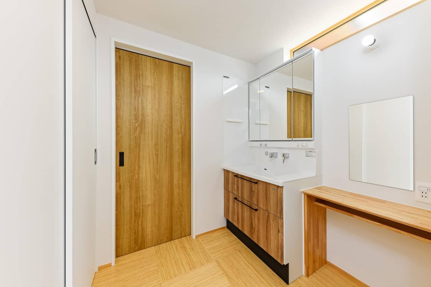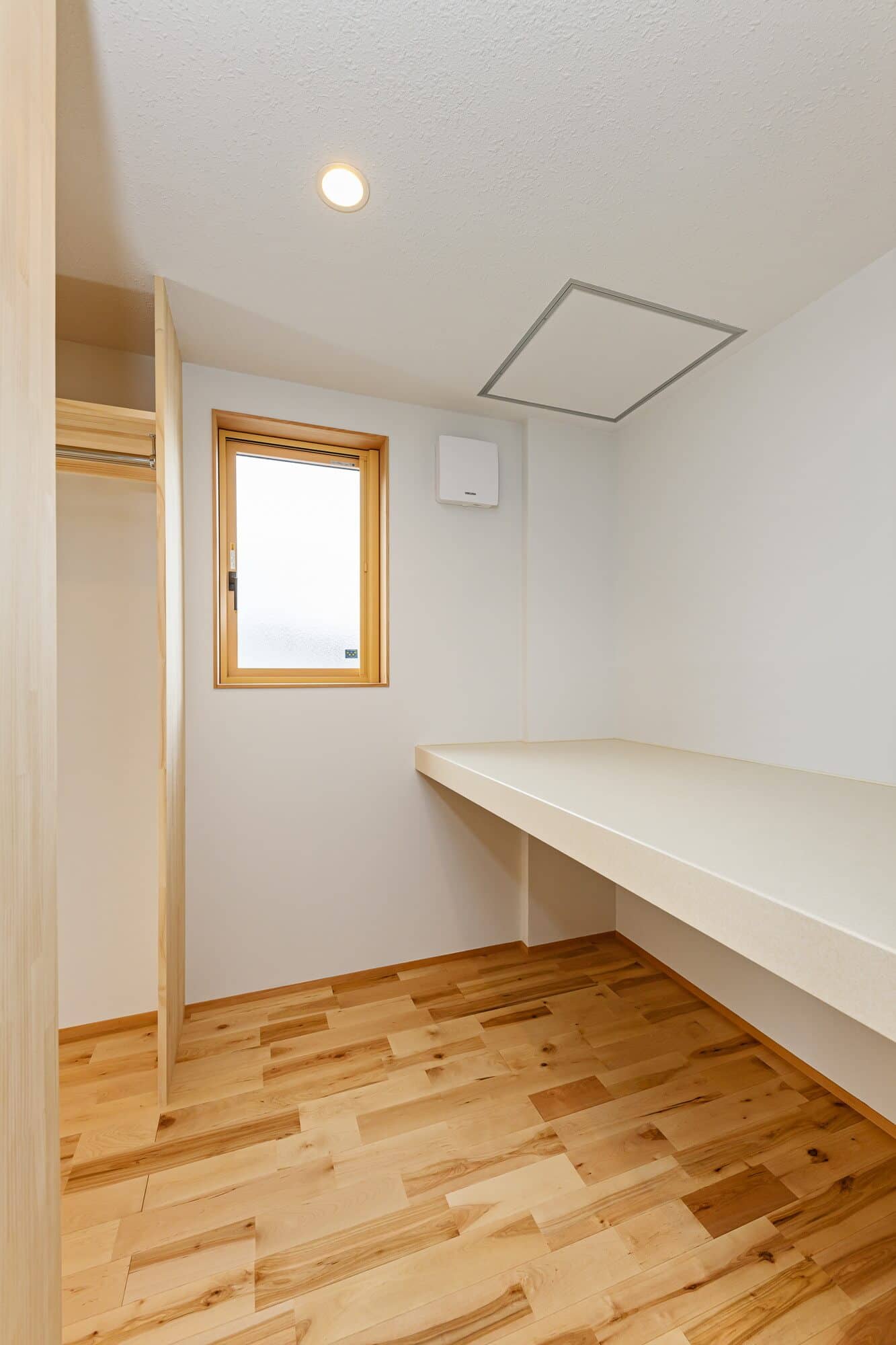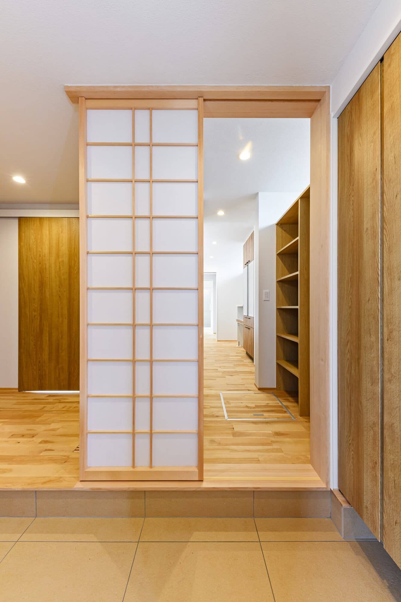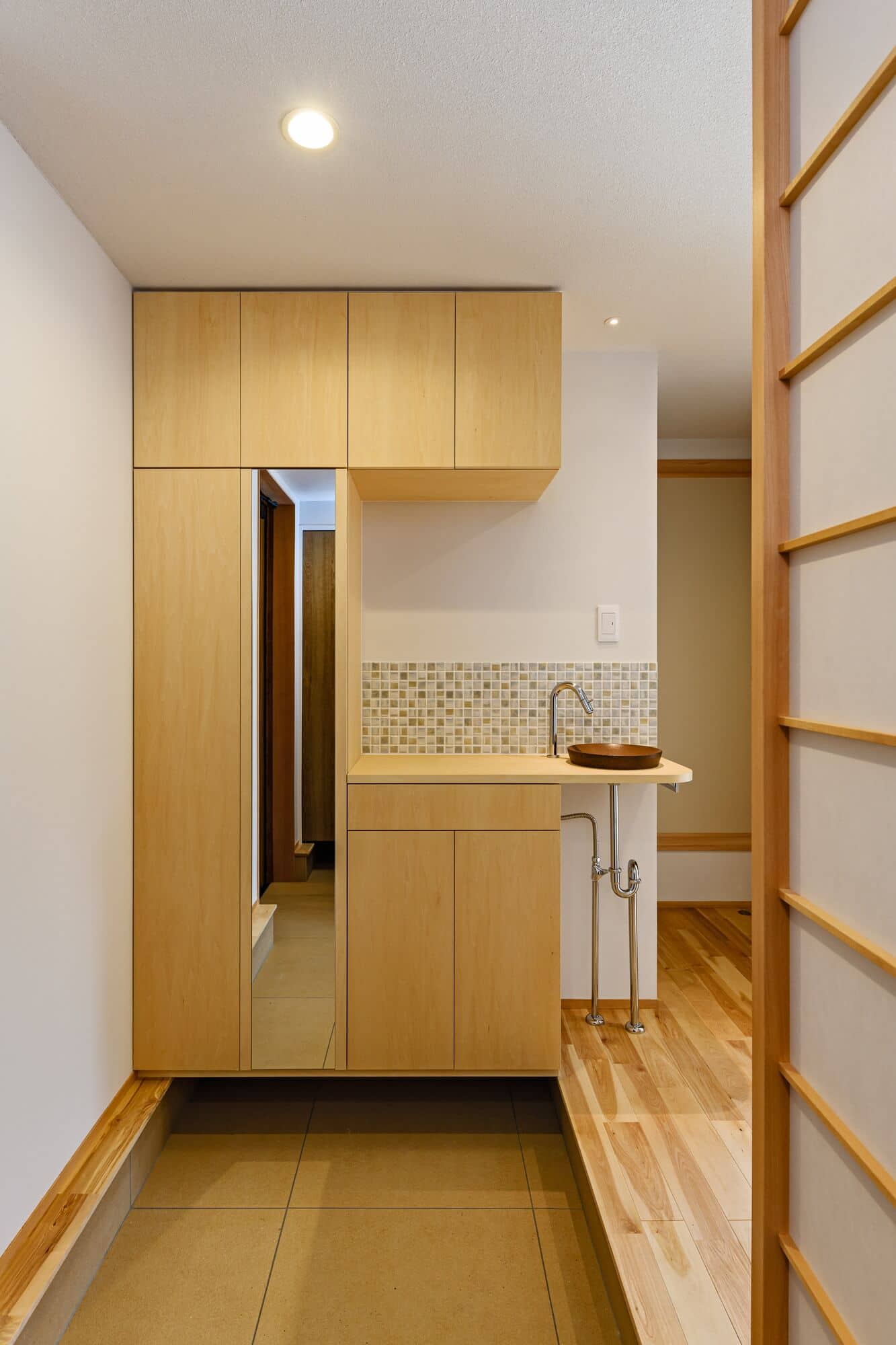 玄関から直通のパントリー→キッチン→洗面脱衣の家事動線や、人気のスロップシンク、造作下足入れに組み込んだ手洗い等、お施主様のこだわりが詰まったお住まいです。
