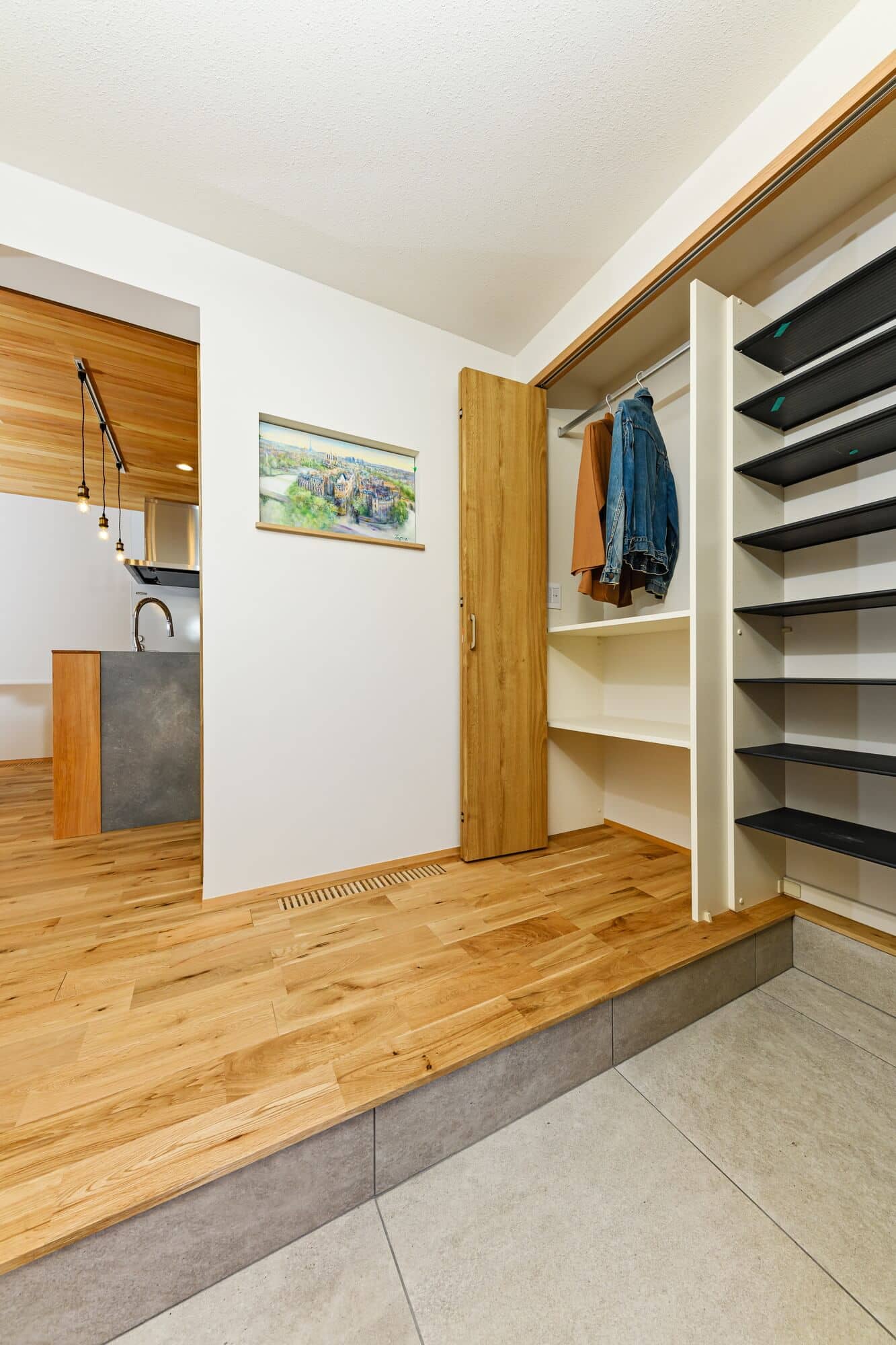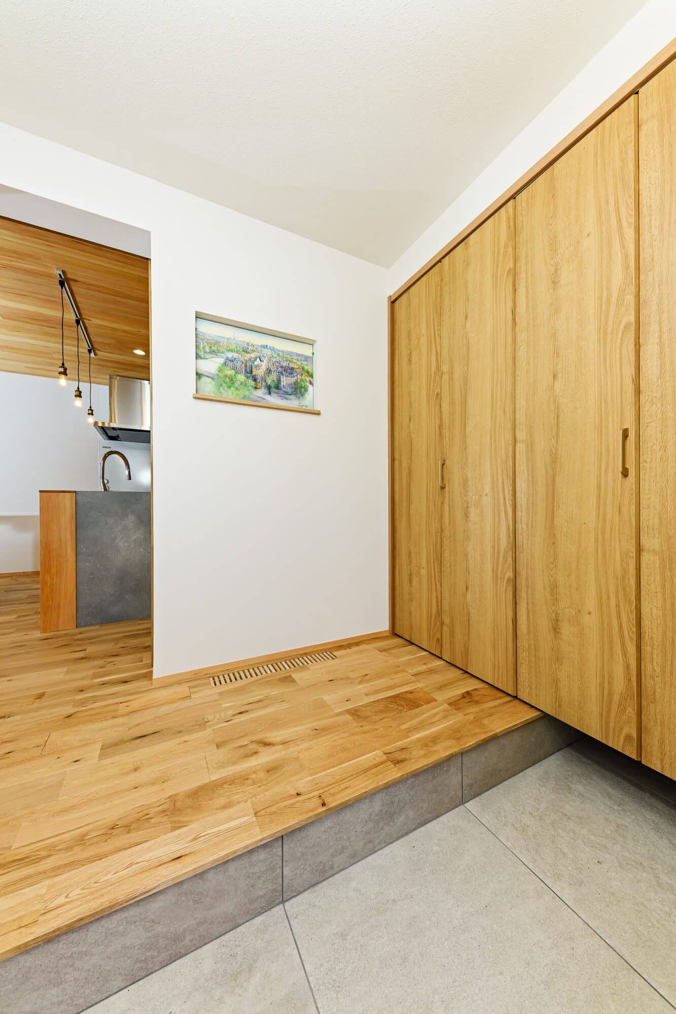 玄関は少し広めの空間を確保。お気に入りの絵画をかざるスペースも作りました。