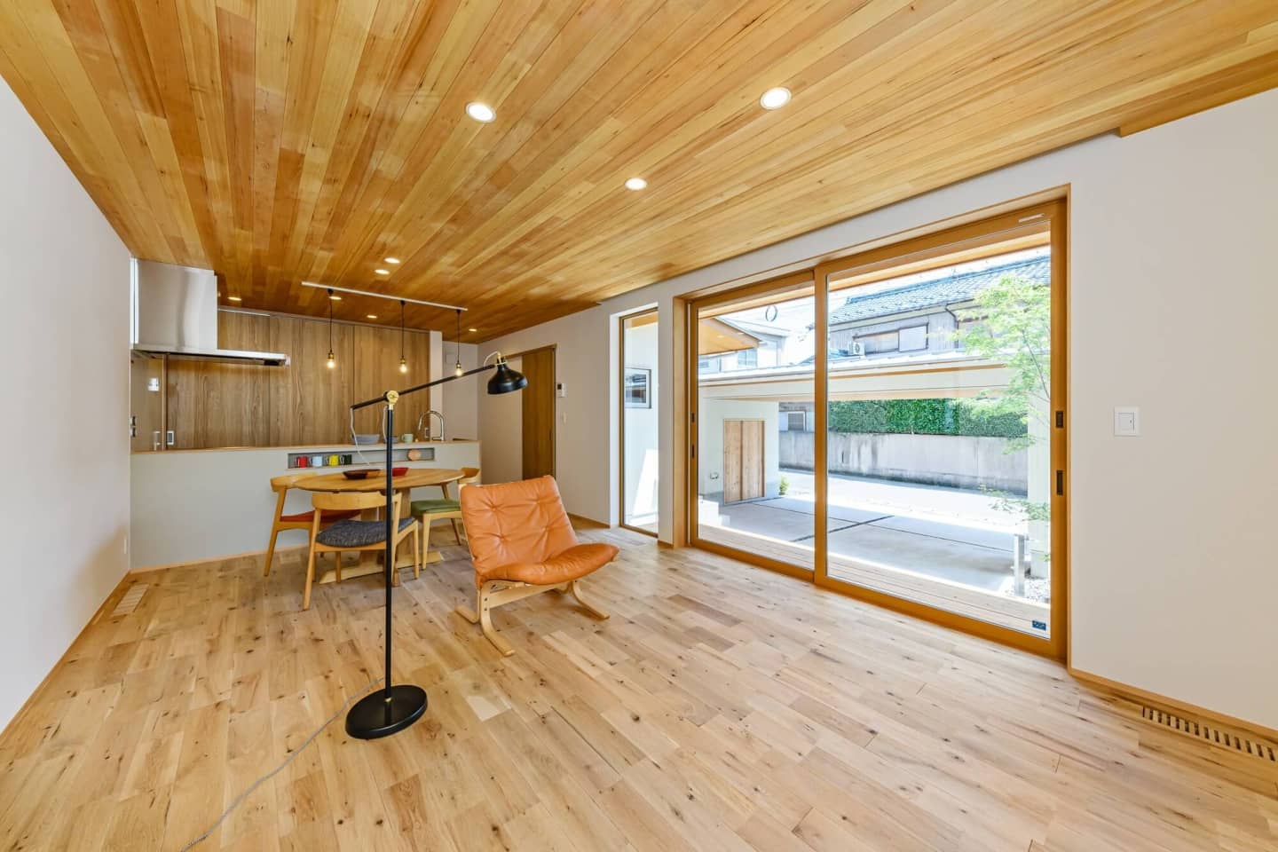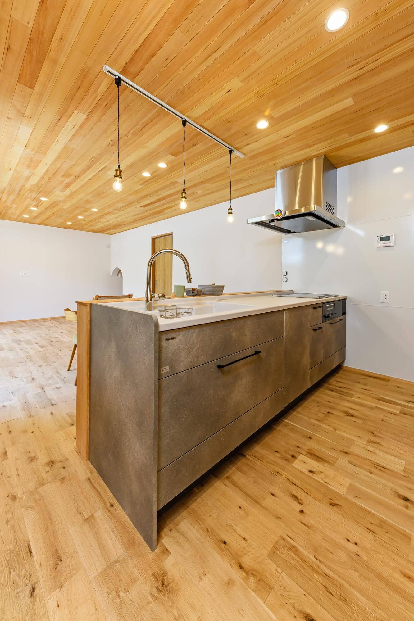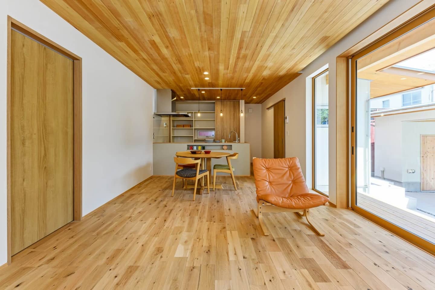 リビングは日当たりの良い場所に配置し、キッチンはリビング・ダイニング全体が見える対面キッチンを採用。玄関にも近く、買い物動線も考慮しました。