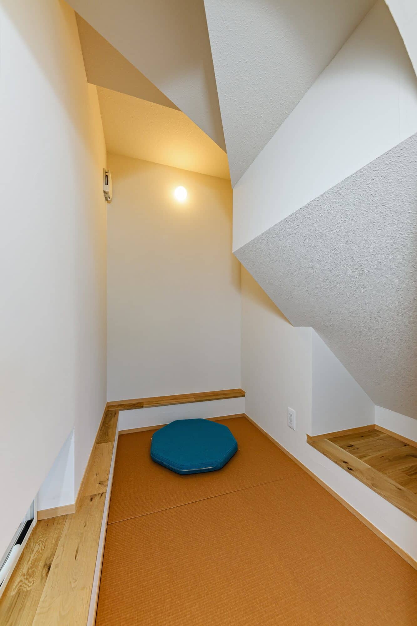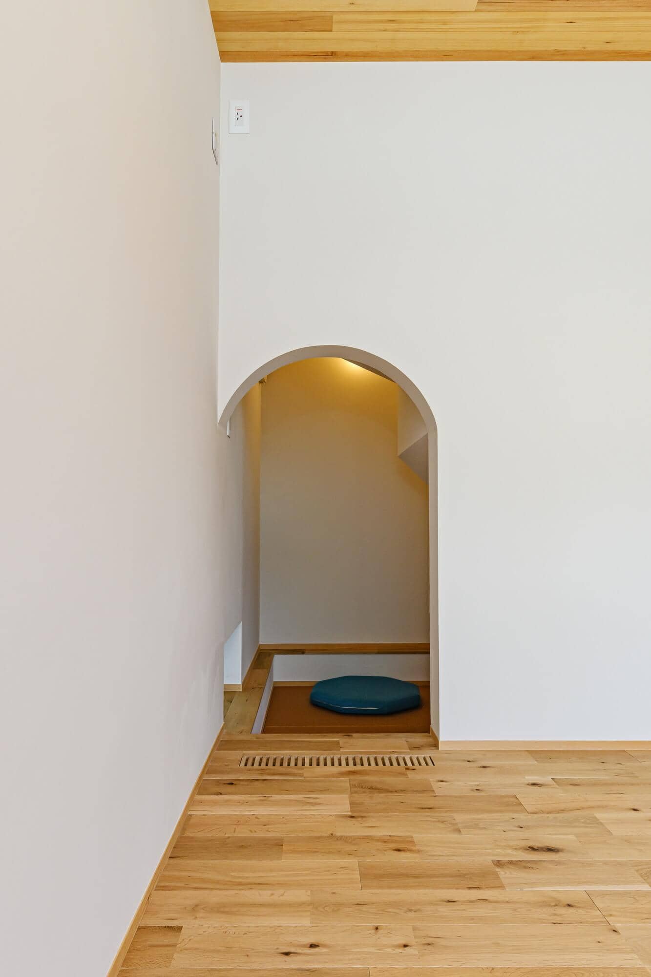 階段下には、一段掘り下げたヌックを配置。お子様の遊び場としてや、こもって本を読んだり…色々と活用できそうです。
