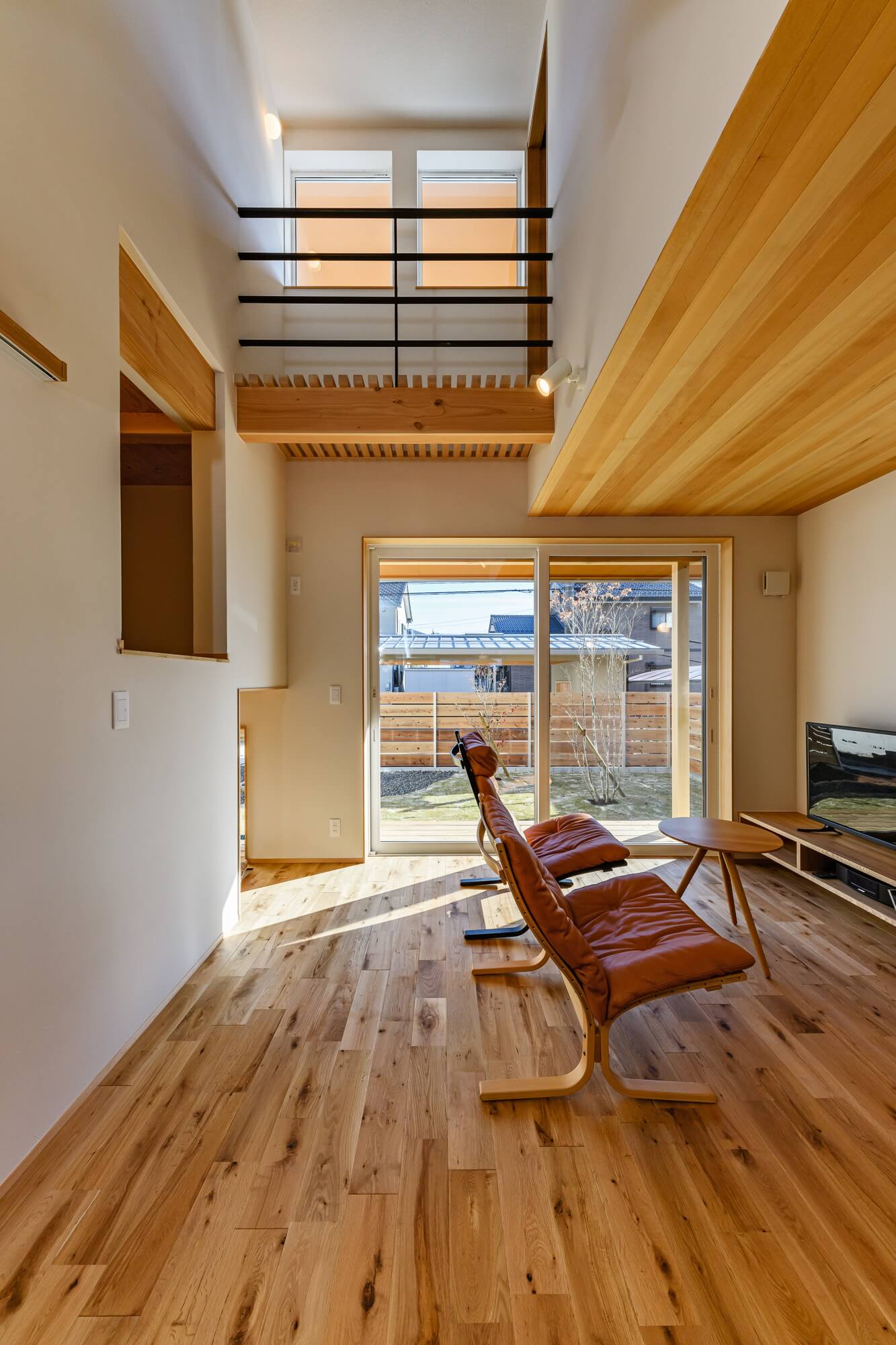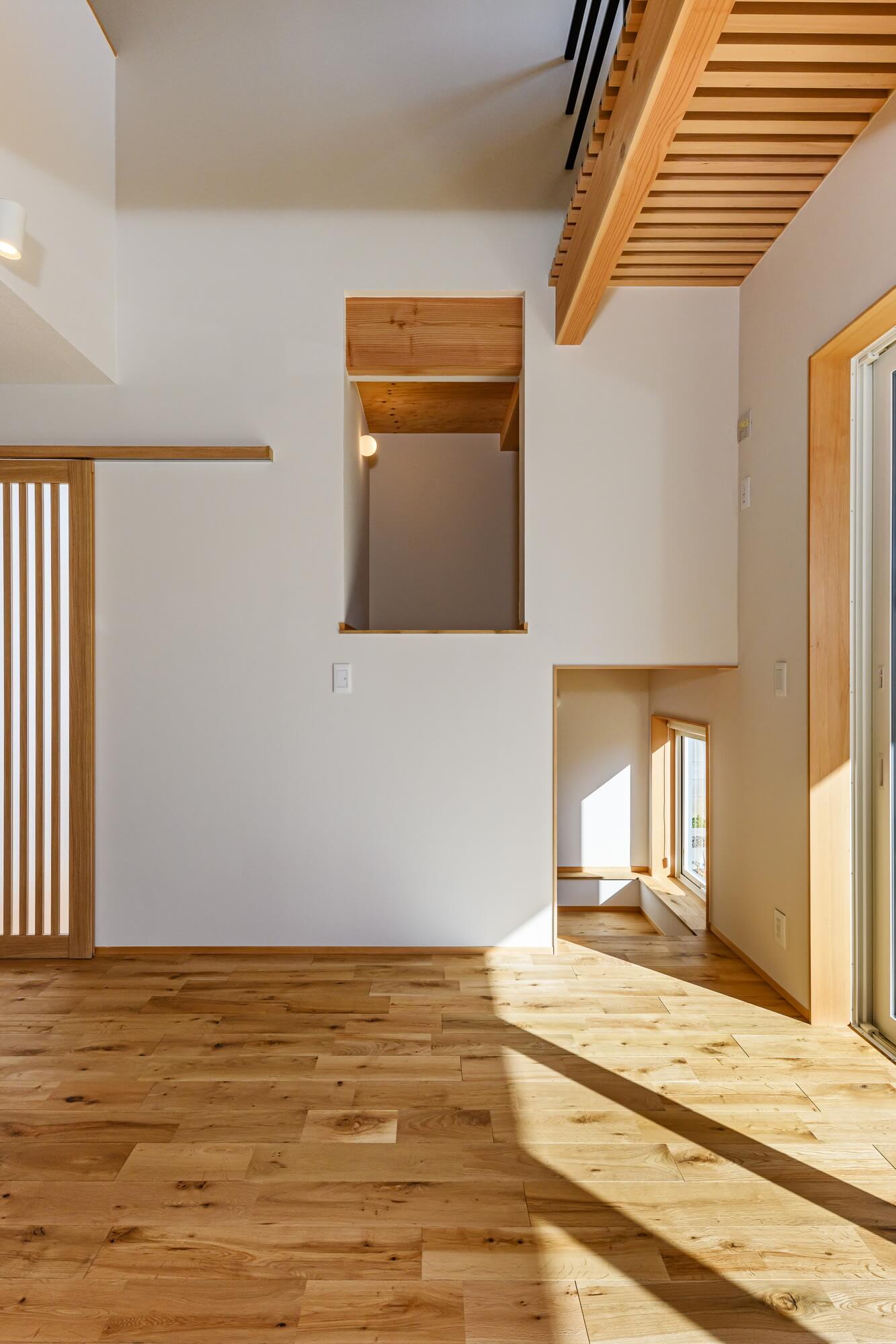 LDKにはキャットウォーク付きの吹抜けをつくり、十分に室内に陽の光を取り入れることが出来ます。