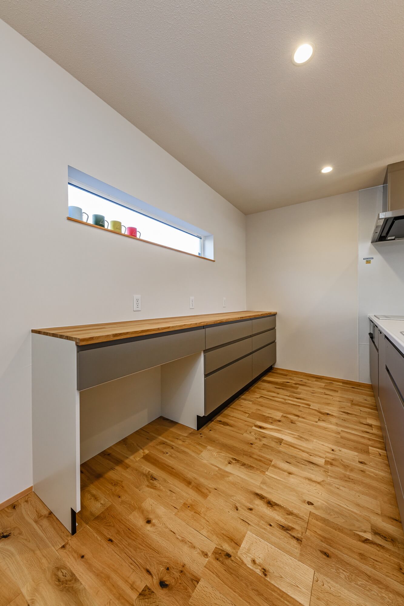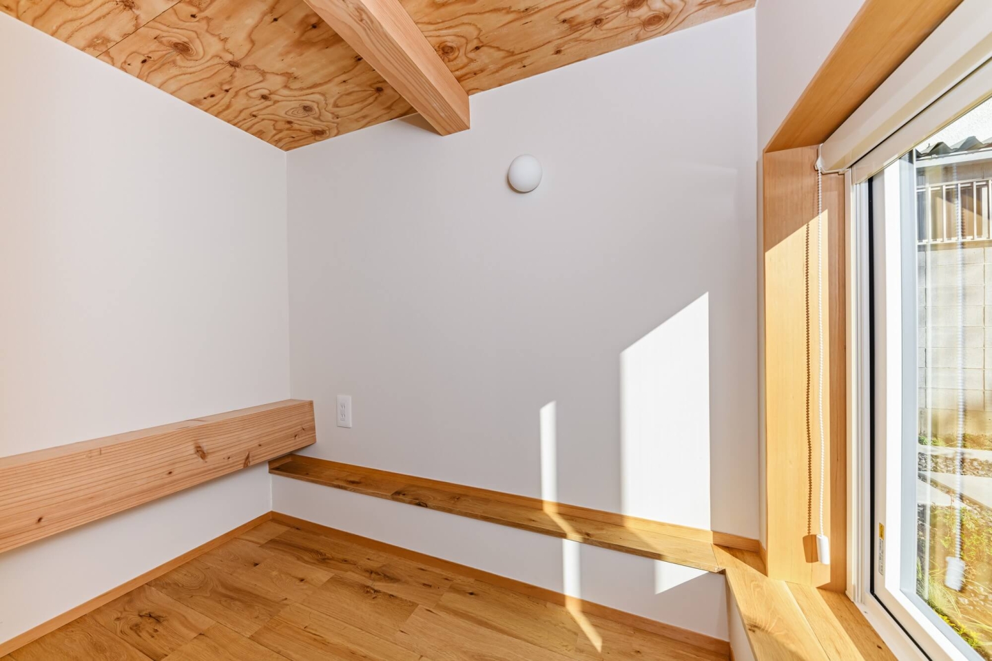 リビング横には小さな書斎を配置し、お庭の眺望を楽しみつつ、おこもり時間を愉しむことが出来ます。