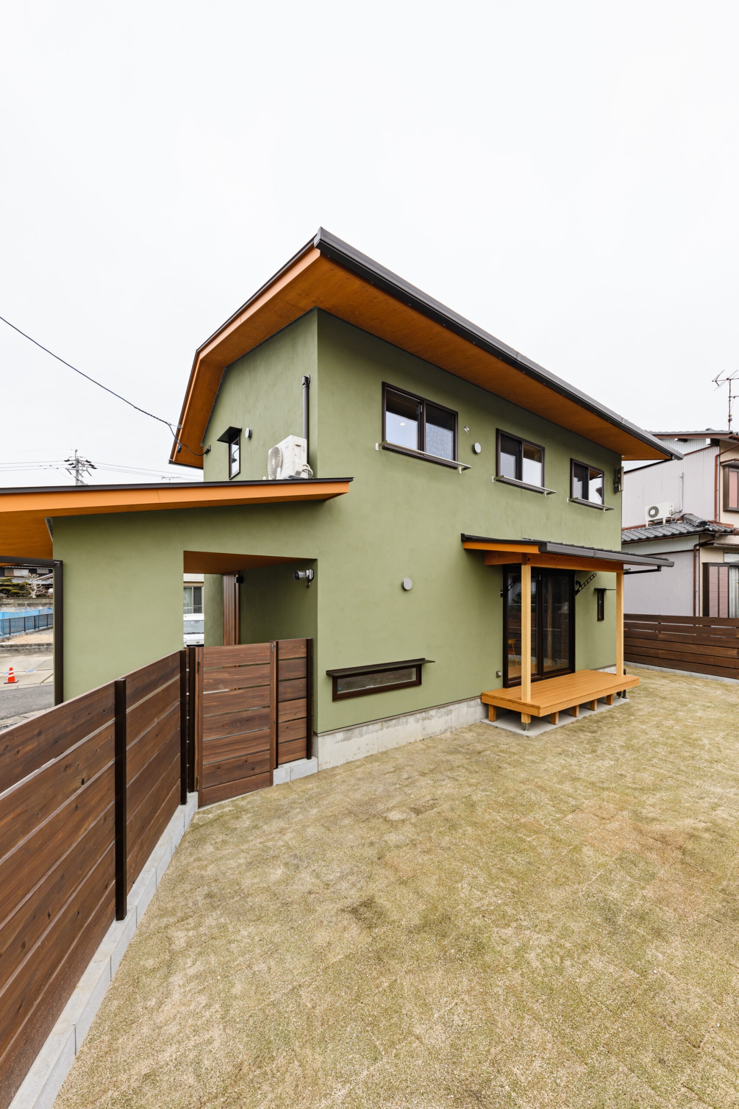 広い芝のお庭はドッグランも兼ねていて、家族皆がのびのびと過ごせる場所です。