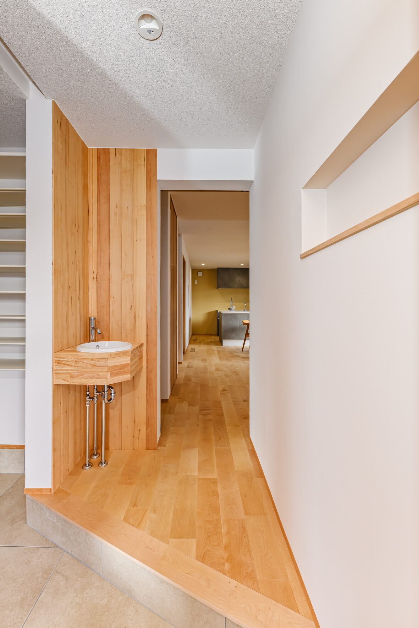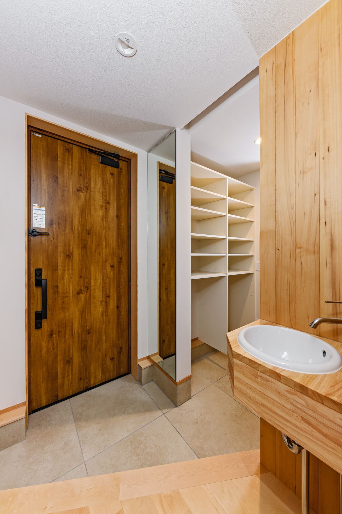 玄関には広々玄関収納を配置し、スッキリ片付きます。可愛らしいお帰り手洗いが、帰宅した住人を出迎えてくれます。