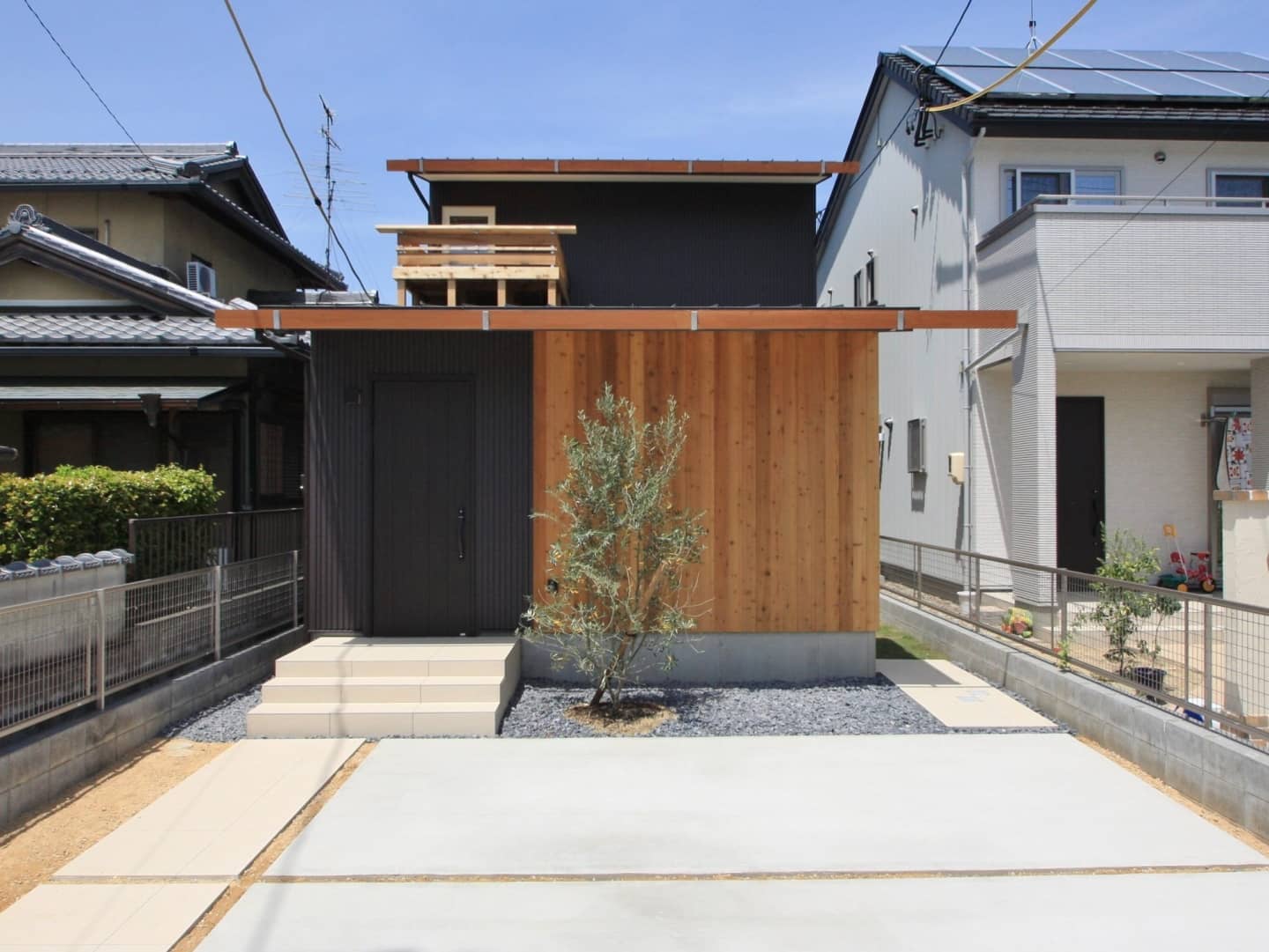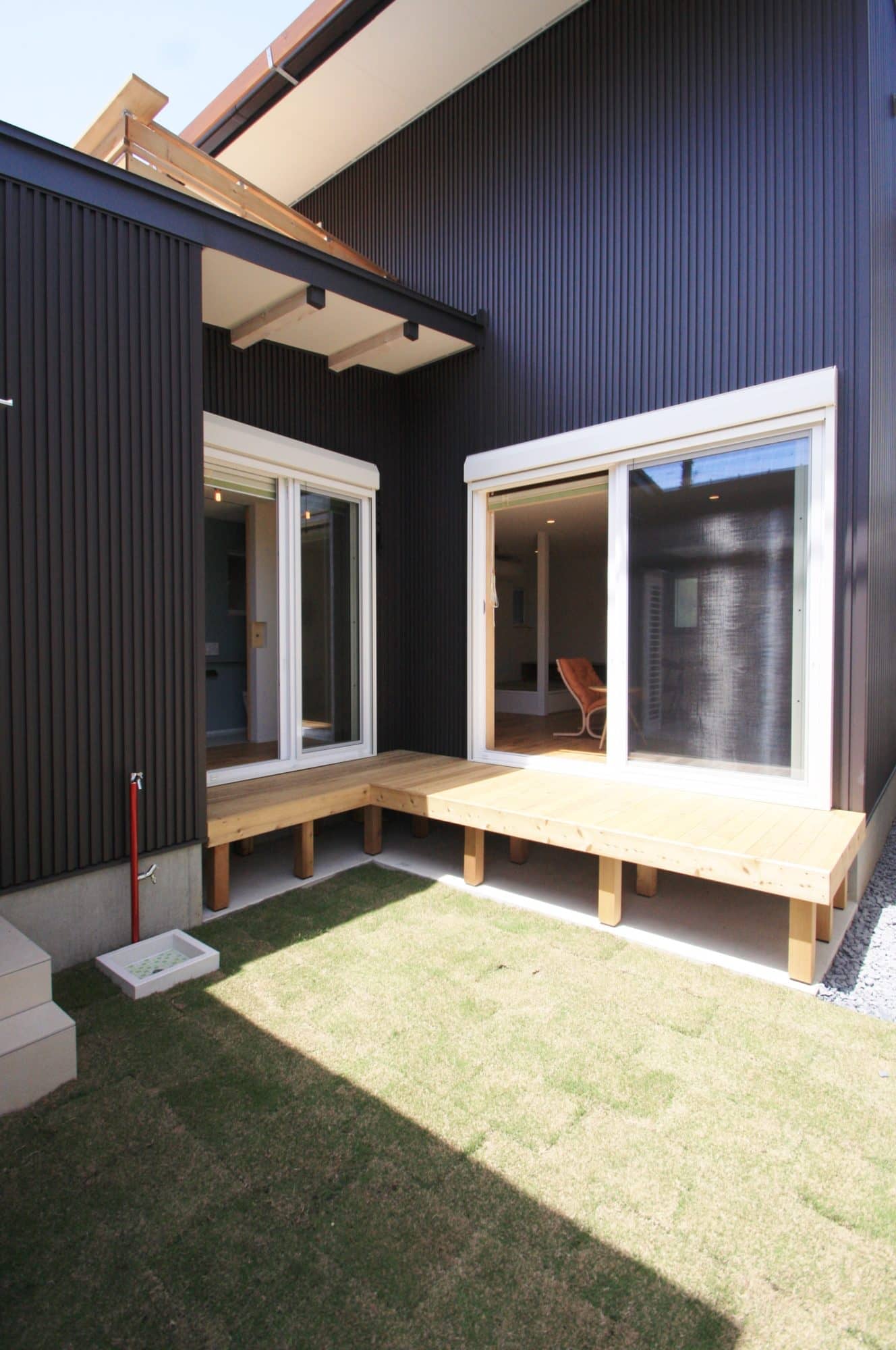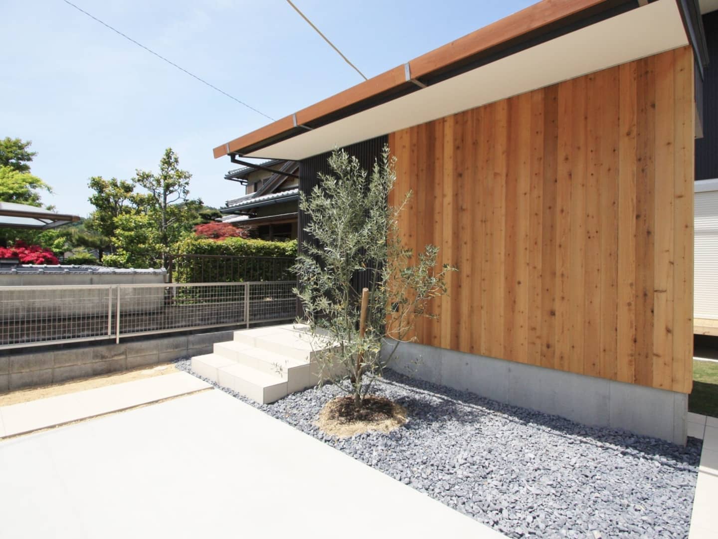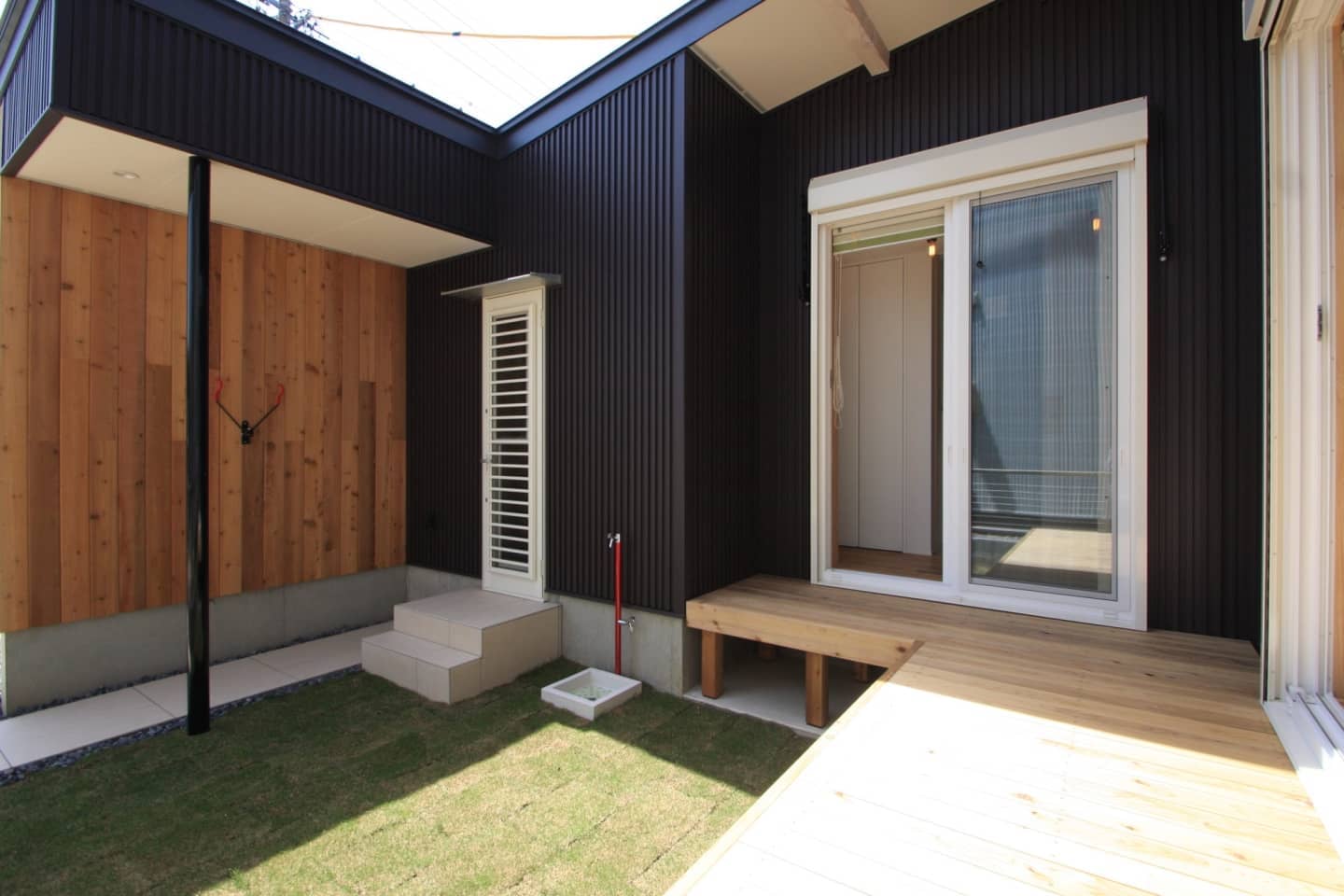 レッドシダー貼りの裏は自転車を駐輪するスペースになっており、見た目だけでなく防犯対策にもなります。
