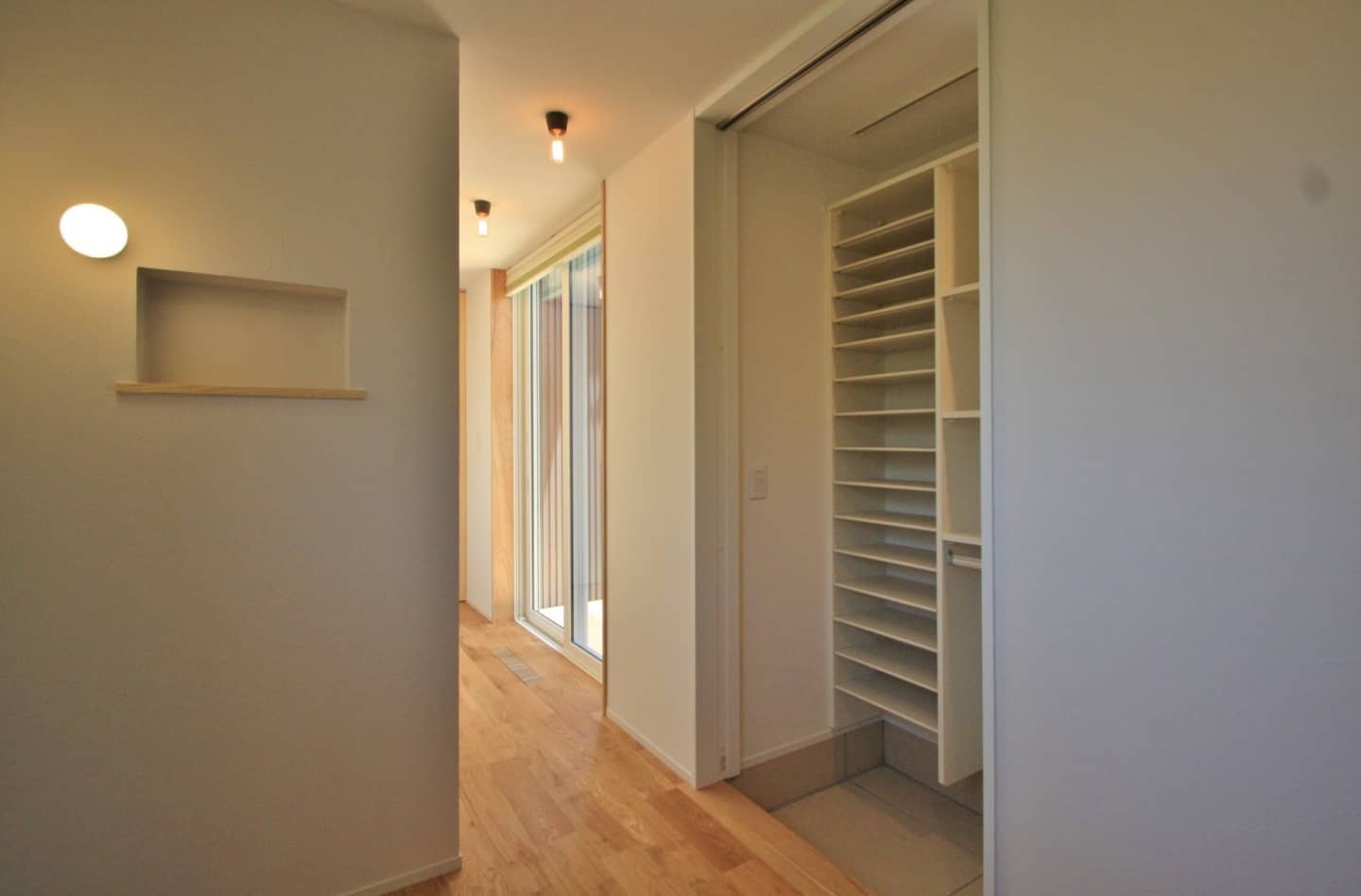 玄関からすぐの廊下には施主様こだわりの照明を使用することでただ歩くだけの廊下にも特別感があり、愛着が湧きます。
