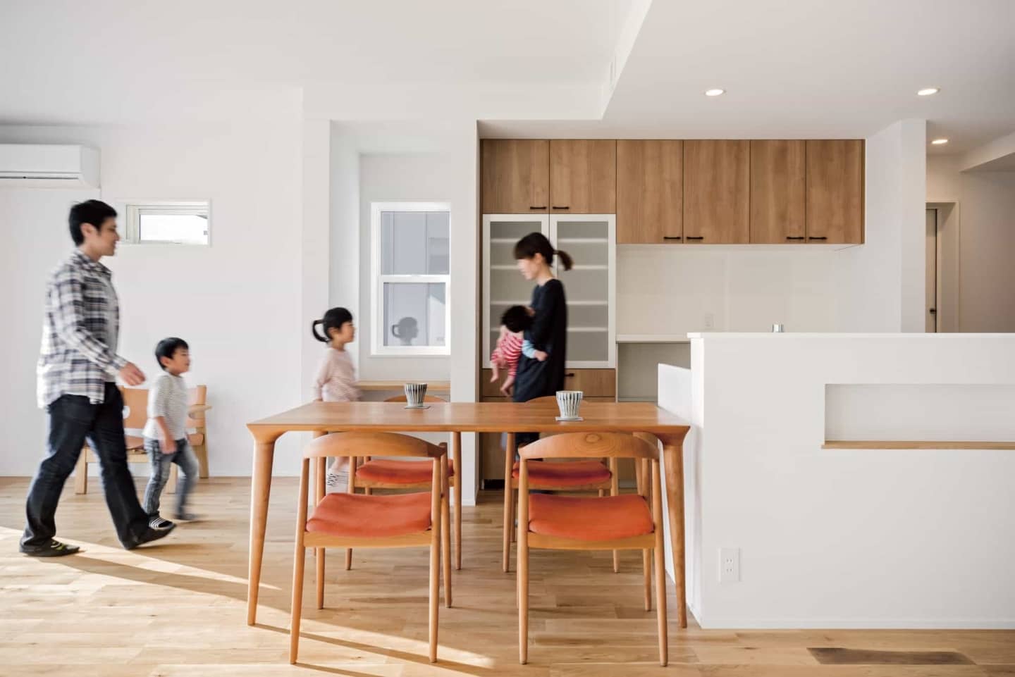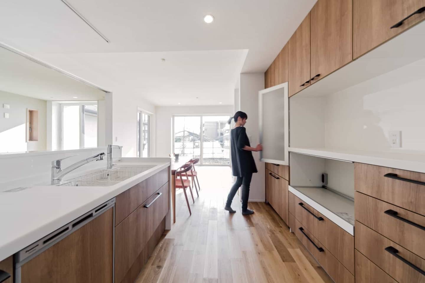 食器棚も効率よく配置。家族の笑顔が見えるキッチンになりました。