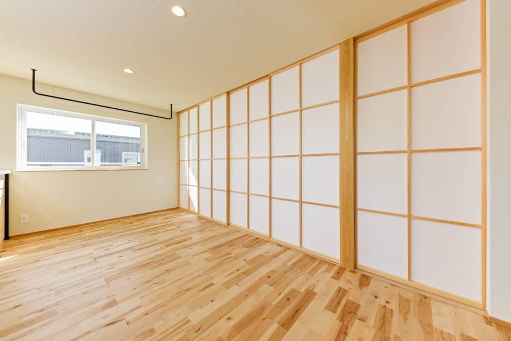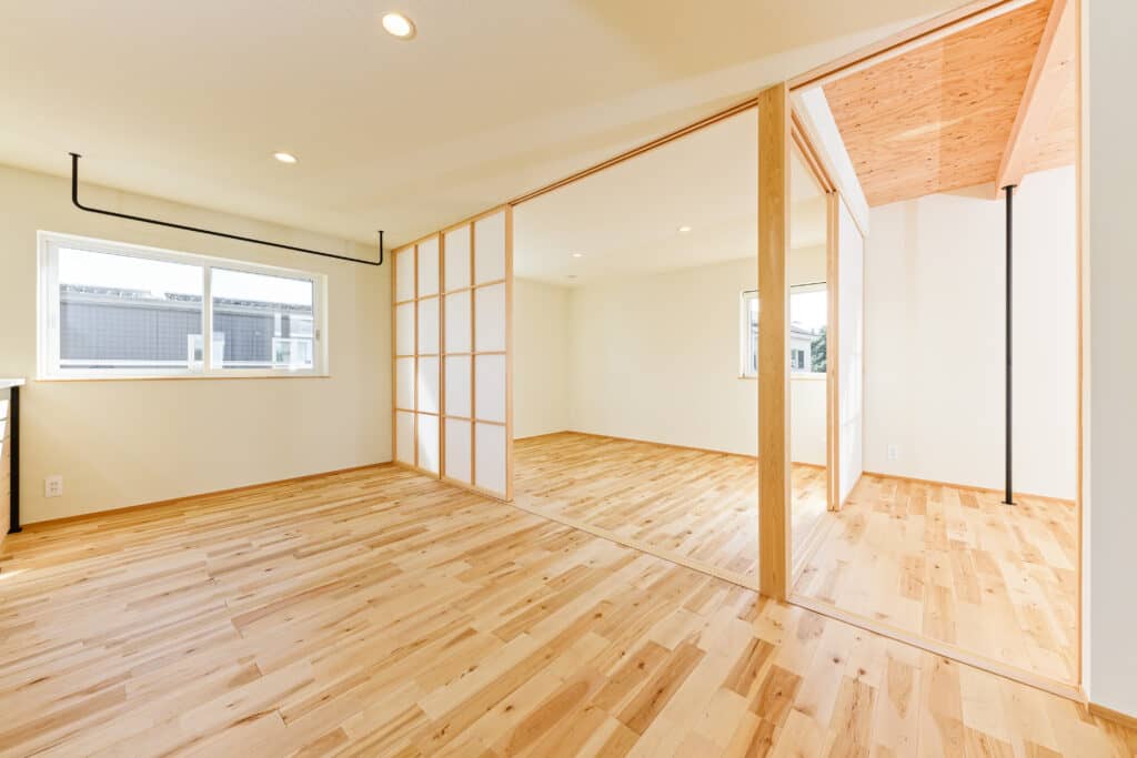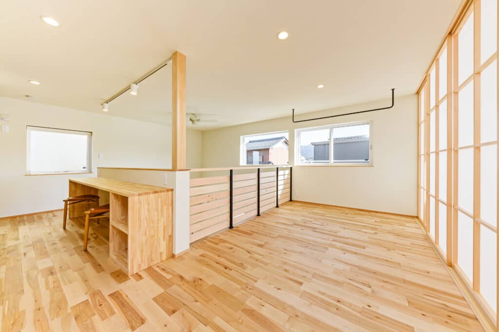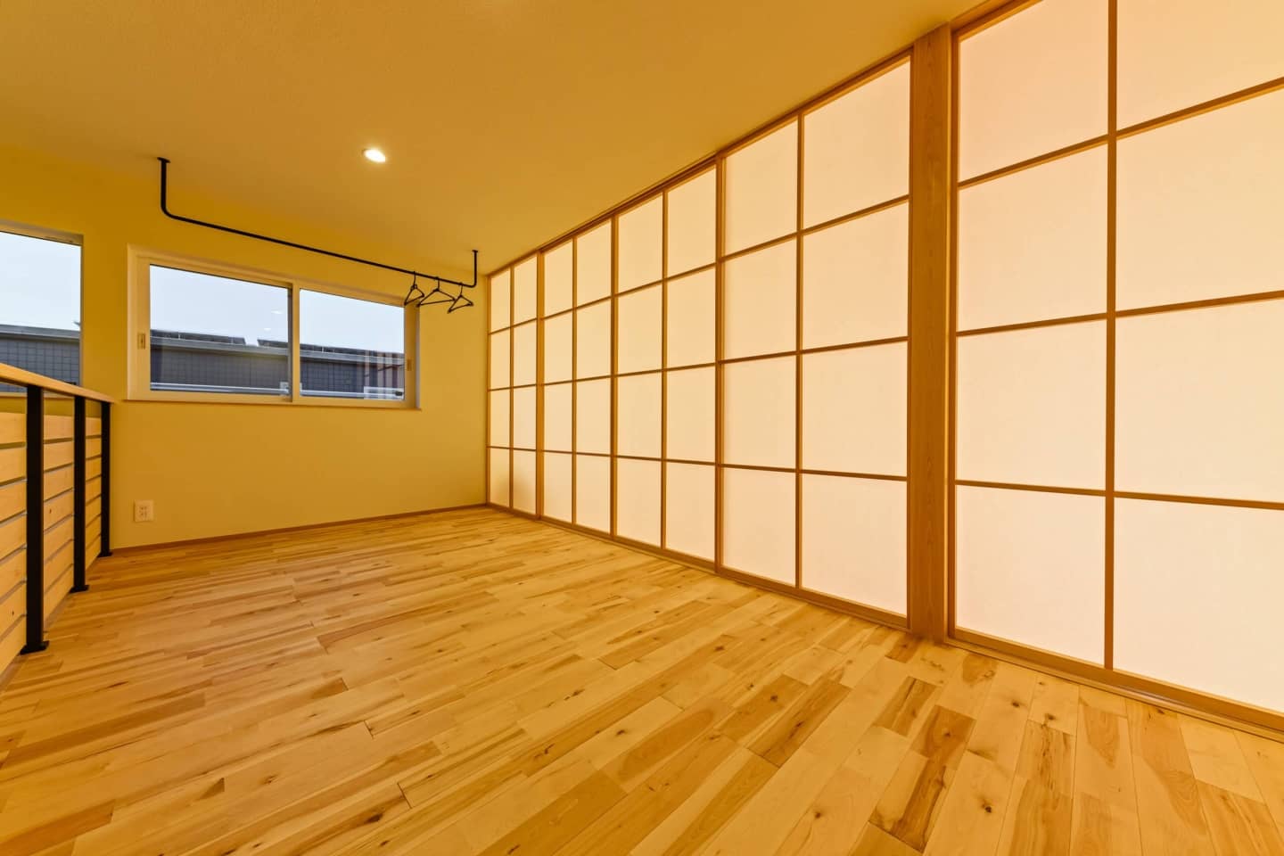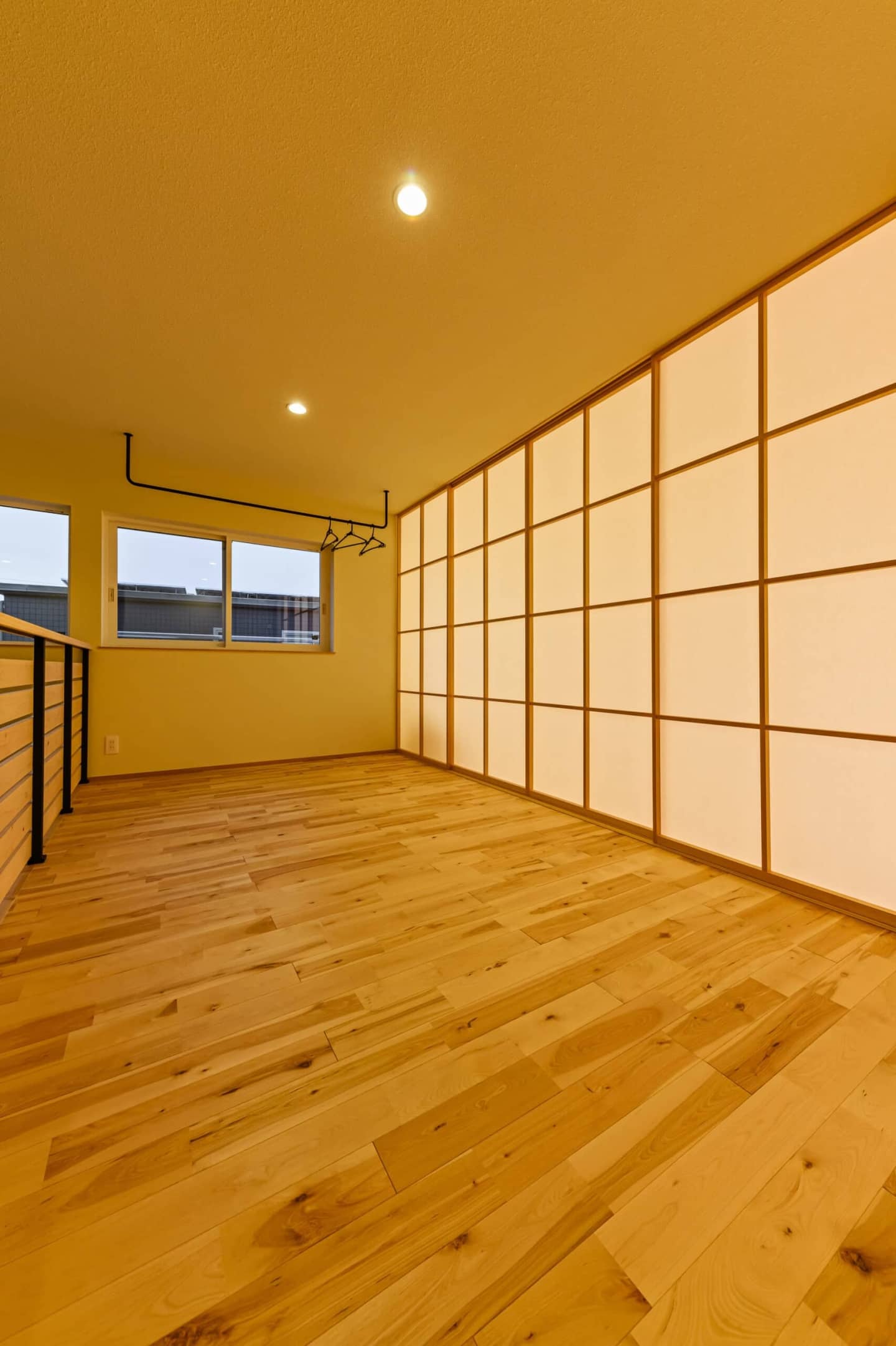 2階に上がると圧巻の大空間が広がり、障子を開放することによっていろいろな用途で広々使えるようにしました。