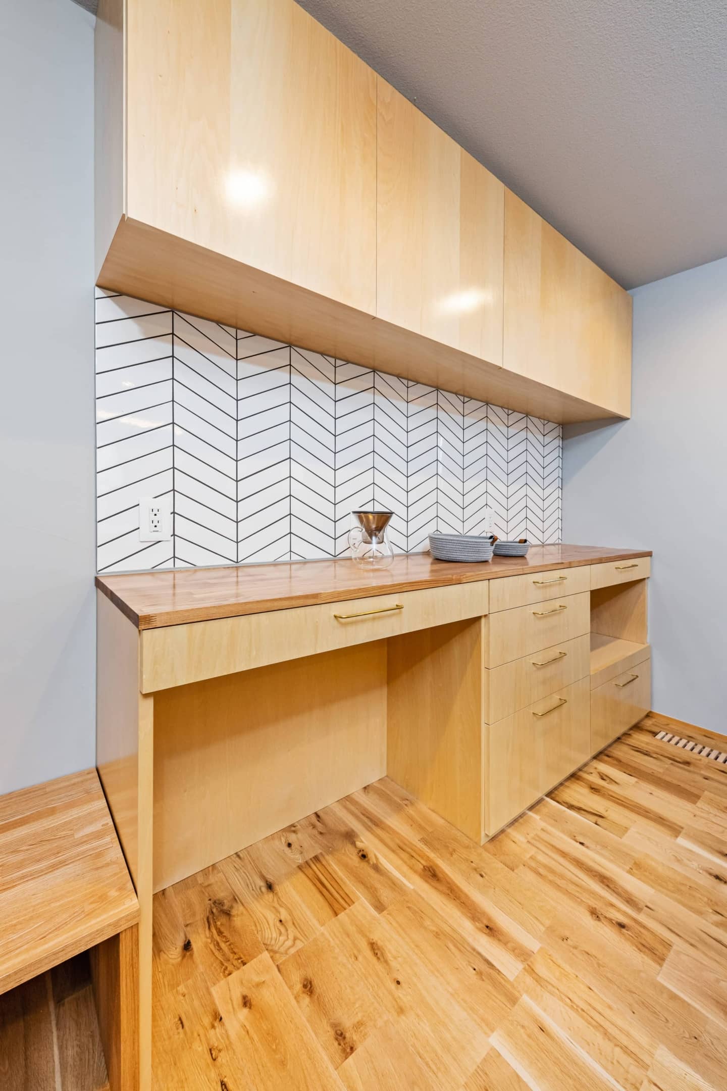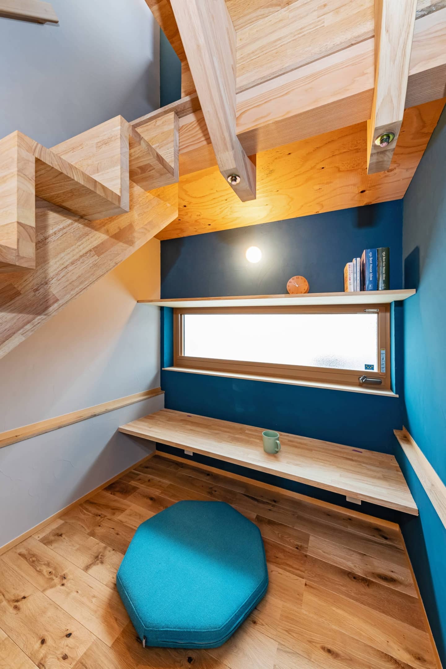 階段下には、空間を有効活用した書斎があり家族の雰囲気を感じつつ作業をすることが出来ます。
