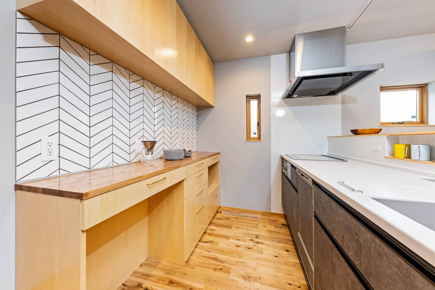 キッチンはリビングが見渡せて水廻りも動きが撮りやすい位置に配置しています。